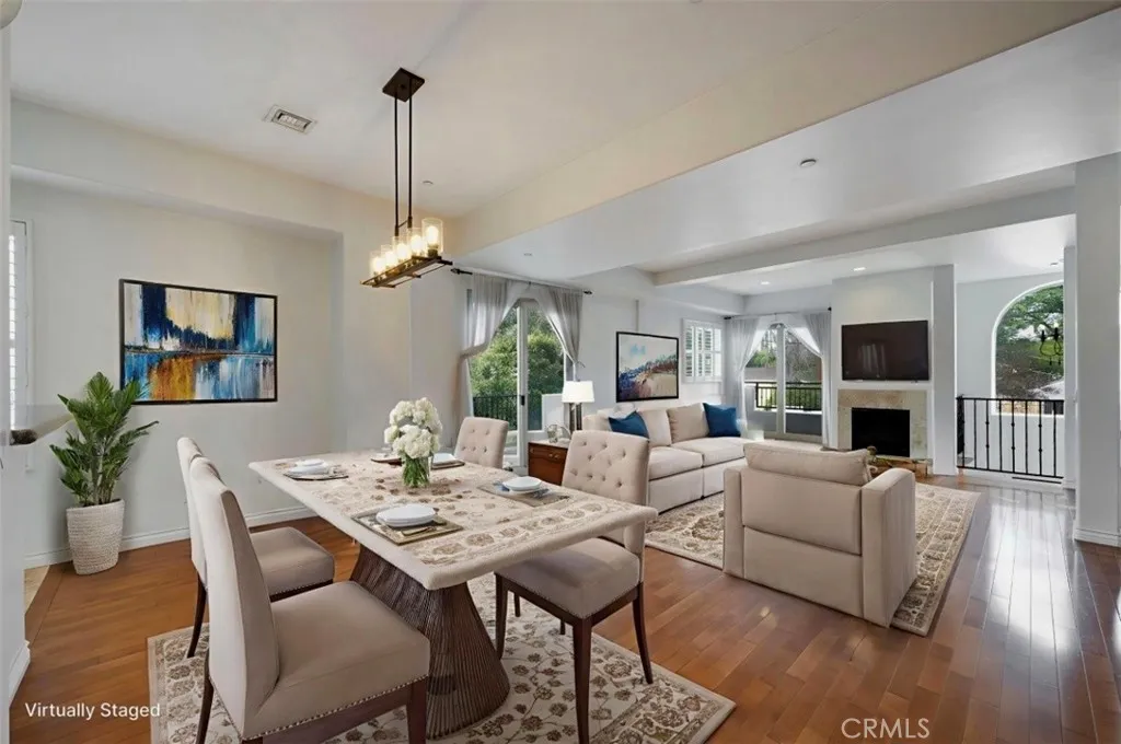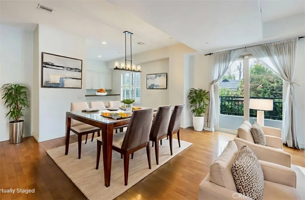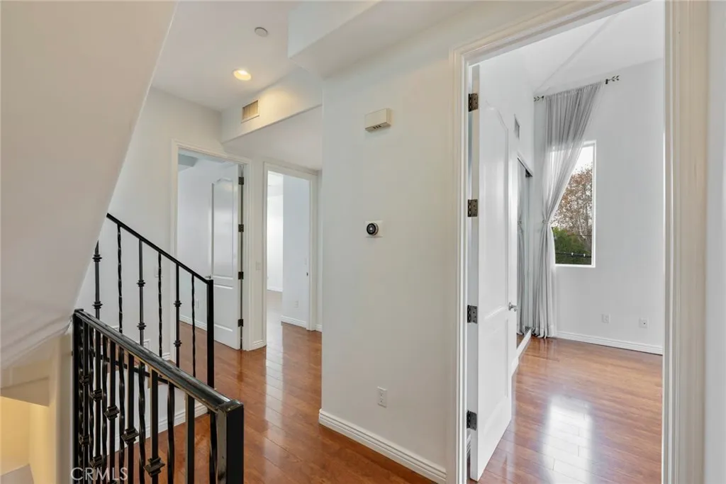 Excellent location in North Hollywood adjacent to Valley Village. Come fall in love with this beautiful Modern Mediterranean end unit on a tree lined street. This home is filled with natural light and an open living concept that are ideal for everyday living and entertaining. Clean lines, large windows, and a seamless flow throughout the living area. Open the sliding glass doors and enjoy the evening breezes. A beautiful front door is located on Hesby Street set back from Colfax that gives you the peace and serenity you desire. This end unit is part of a rare 5 unit building. High ceilings, beautiful light fixtures, hardwood floors, and plantation shutters are some of the features this home offers. Large kitchen includes stainless steel appliances, granite countertops, and opens to the dining area. Living room has a cozy fireplace and two balconies. The grand master bedroom has amazing high ceilings, a second fireplace, another balcony, and a walk-in closet. The spacious master bathroom has dual sinks, soaking tub for those long days and a walk-in shower. Two addition bedrooms with plantation shutters, a full bath, and an indoor laundry room are also located on that level. A roof top private terrace with city light views can be found on the top floor. A large private basement perfect for all your stuff is located on the bottom level. Two tandem parking spaces are in a gated parking garage. Conveniently located on a quite street close to schools, shopping, and transportation. This home blends architectural elegance with modern comfort. Come see it today.