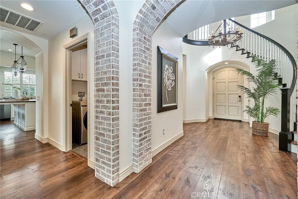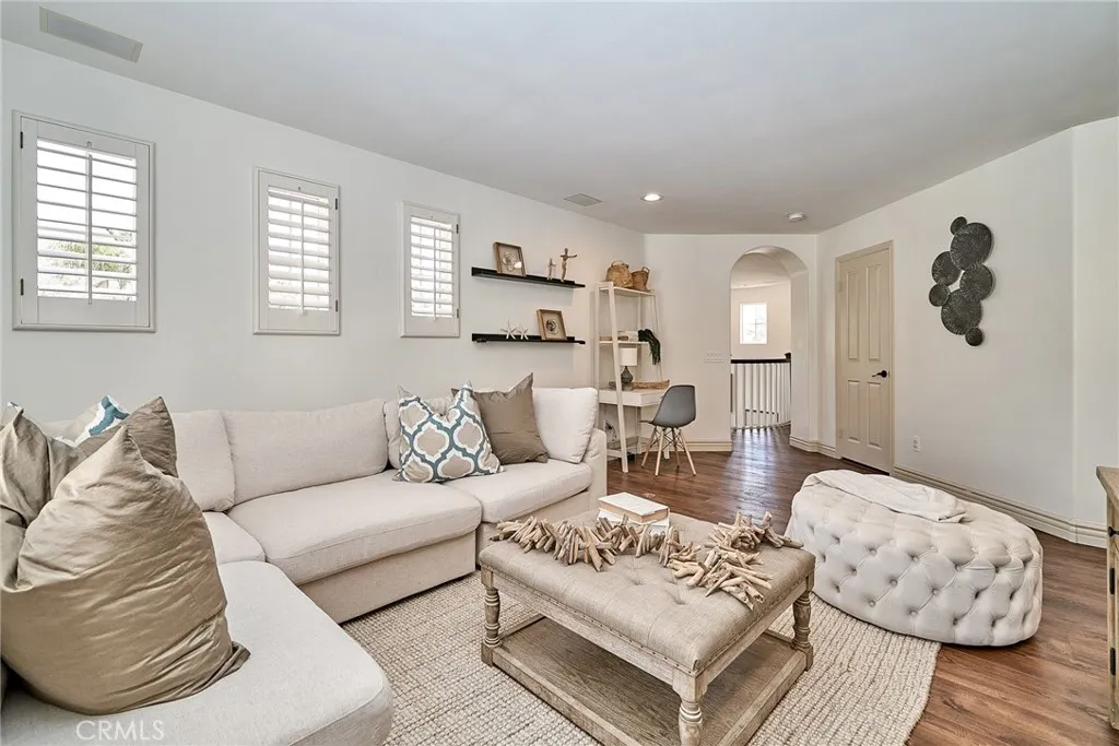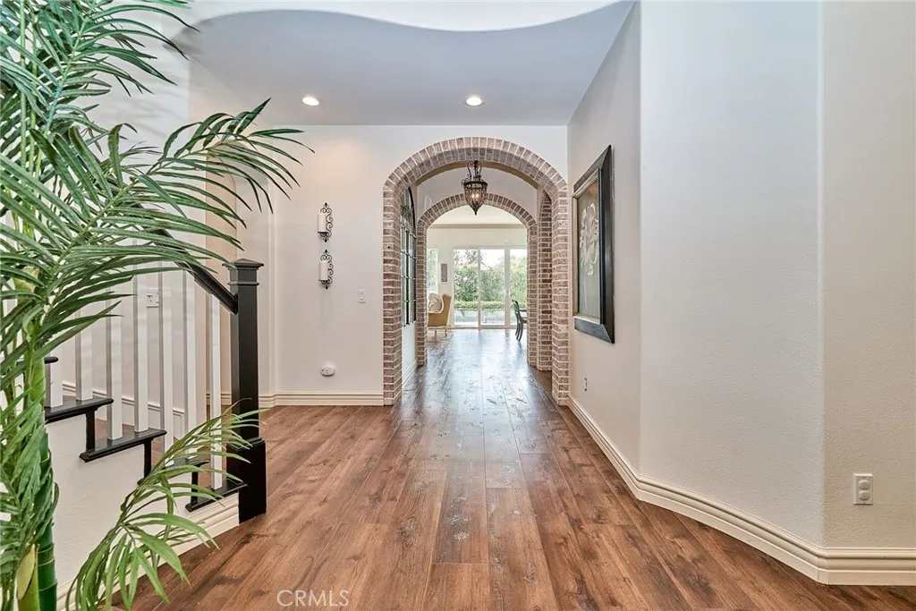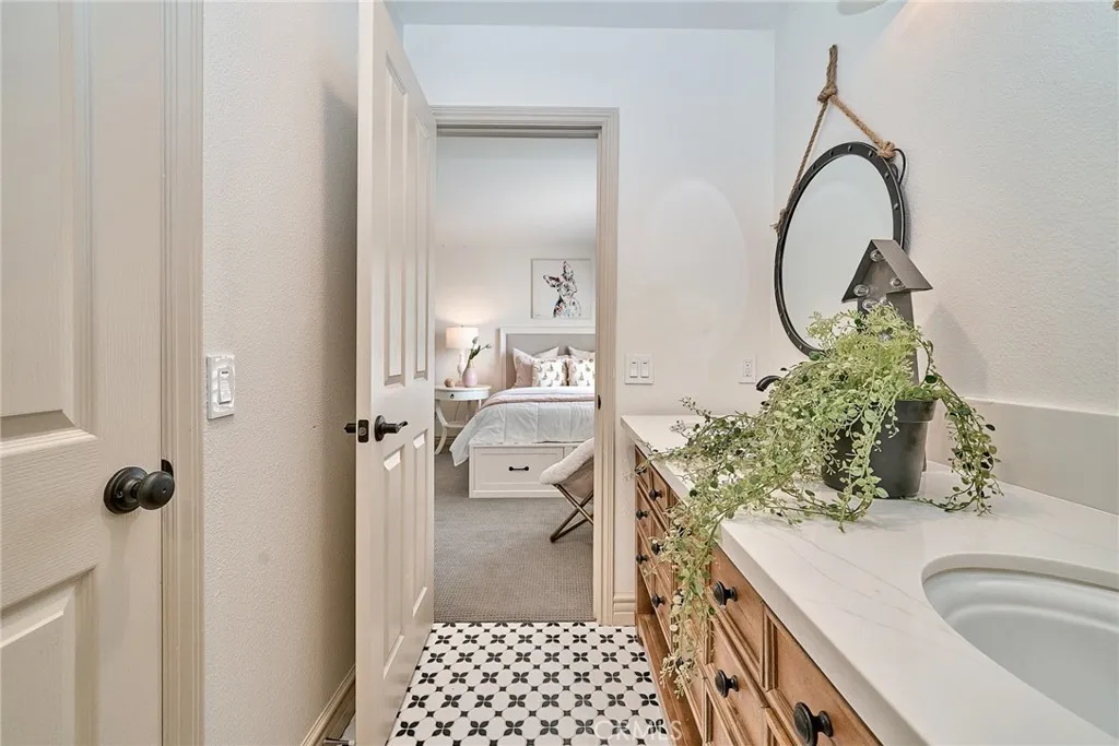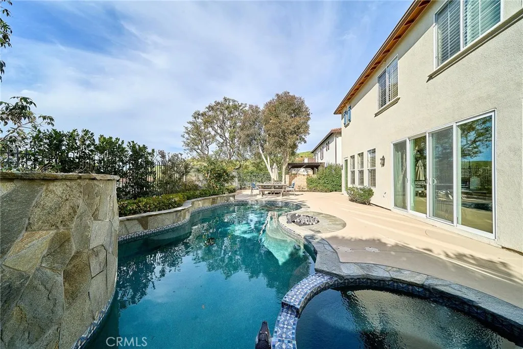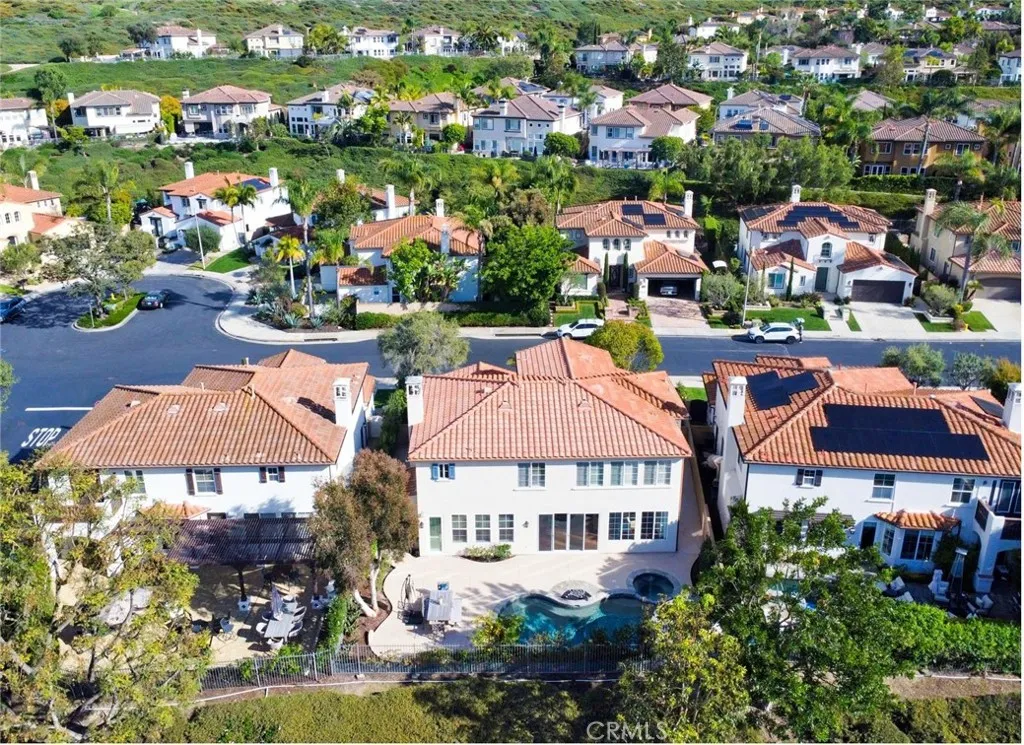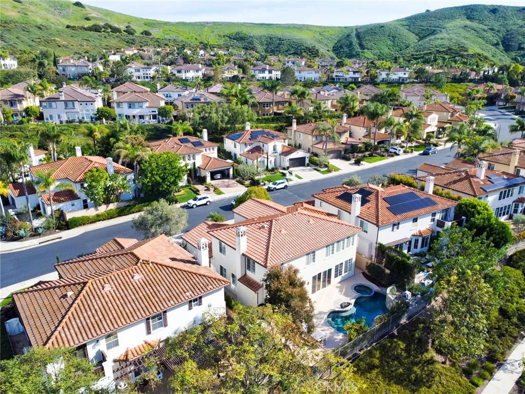 Situated within the gated community of San Juan Hills Estates, this beautifully remodeled residence offers exceptional privacy, an ideal layout, and light-filled living spaces throughout. A highly sought-after floor plan features two bedrooms and two bathrooms on the main level, a rare and valuable offering. The homes favorable orientation enhances natural light and creates a bright, welcoming atmosphere. The elegant entry foyer with a sweeping circular staircase opens to refined formal living and dining areas, where French doors lead to peaceful hillside and pool views. The open-concept kitchen is designed for both functionality and entertaining, featuring a large center island with breakfast bar seating, walk-in pantry, ample cabinetry, and generous counter space. The kitchen flows seamlessly into the family room with fireplace, creating a comfortable and inviting gathering space. The private backyard is ideal for outdoor living and entertaining, offering a sunny pool and spa with no homes behind for added privacy. The spacious primary suite enjoys serene rolling hill views and includes two walk-in closets and a spa-inspired bathroom with soaking tub, oversized shower and dual vanities. An upstairs guest wing includes two additional bedrooms, two bathrooms, a convenient half bath, and a large bonus living area with mini refrigerator, ideal for a media room, game room, or guest retreat. One of the main-level bedrooms is currently used as a home office and features its own private casita-style entrance, offering flexibility for guests or multigenerational living. Updated fl