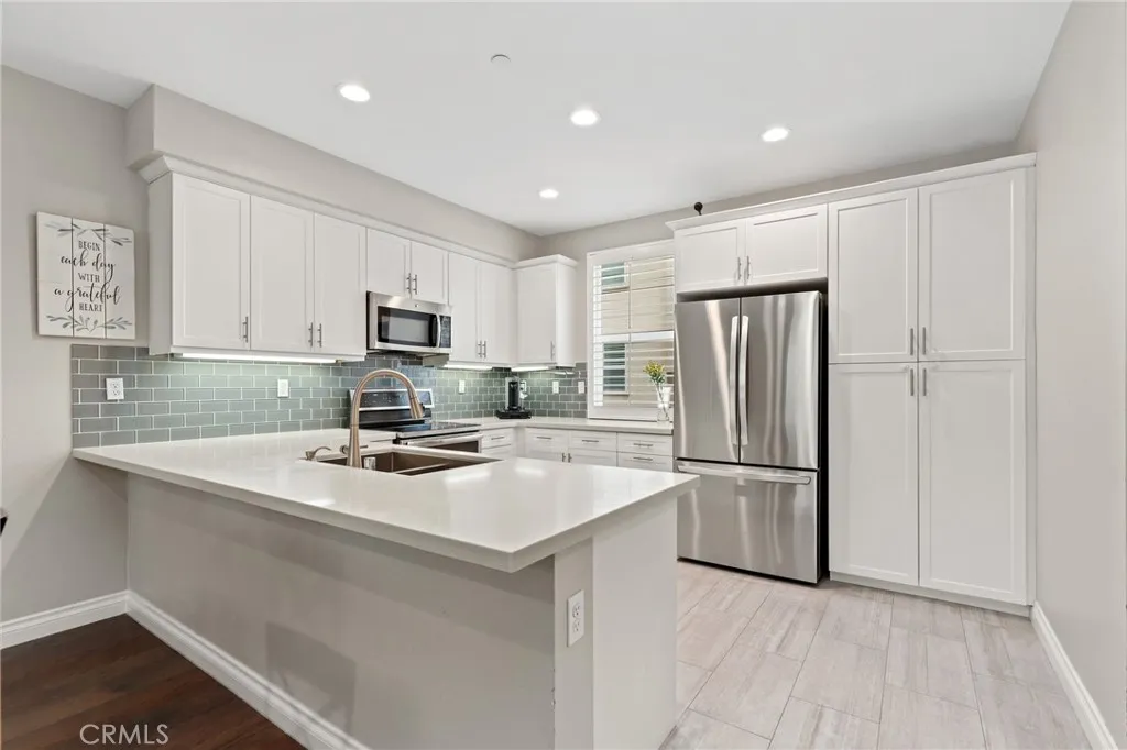 Modern Comfort in the Heart of Glendora | Gated Resort-Style Living... Welcome to 649 W Foothill Blvd Unit 2, a beautifully appointed, solar-powered townhome located in the desirable Foothill Collection, a gated resort-style community in the heart of Glendora. With 3 spacious bedrooms, a versatile bonus room/office, and 4 bathrooms, this multi-level home offers the perfect blend of function, style, and convenience. The first floor greets you with direct access from the attached two-car garage, a flexible office or den space ideal for remote work or a guest retreat, a convenient powder room, and access to a private, fenced front patio, perfect for morning coffee or evening relaxation. Upstairs, the main level showcases an open-concept layout designed for modern living. The bright and stylish kitchen is the centerpiece, featuring quartz countertops, a peninsula with bar seating, classic subway tile backsplash, stainless steel appliances, and crisp white shaker cabinetry. Just off the kitchen is a separate laundry room and an additional half bath for guests. The spacious living and dining area boasts warm wood flooring and ample room for entertaining or everyday lounging. The top floor features all three bedrooms, including the luxurious primary suite with a walk-in closet and an ensuite bathroom equipped with a dual-sink vanity, oversized walk-in shower, and private water closet. Two additional bedrooms and a full guest bath are located just down the hall. Inside and out, this home is thoughtfully designed with comfort and efficiency in mind, from wood-grain tile in the kitch