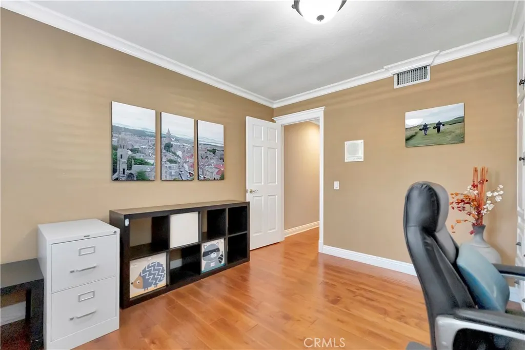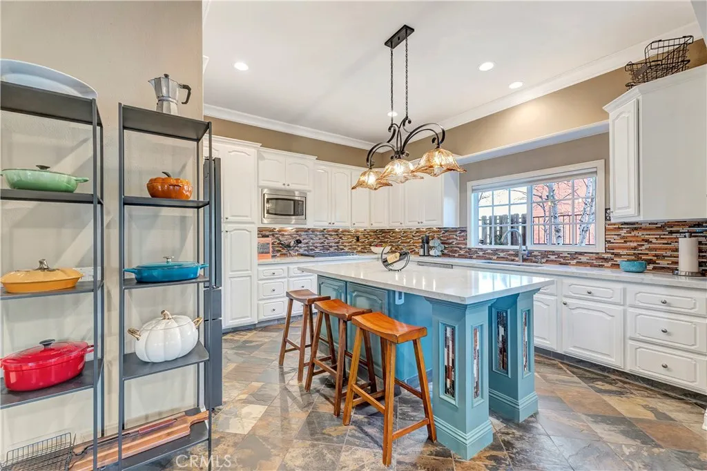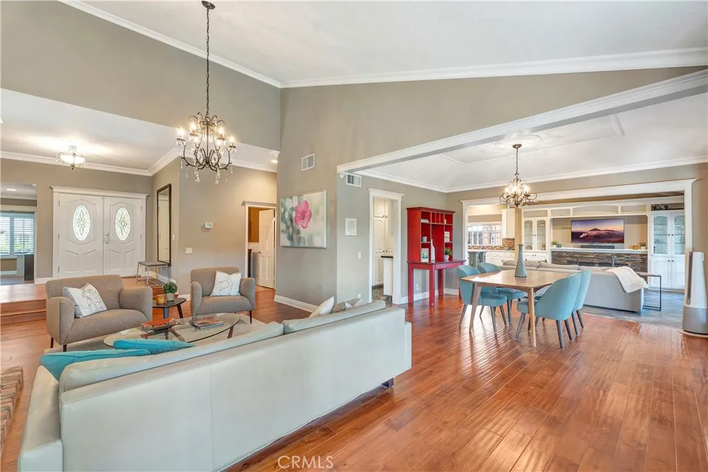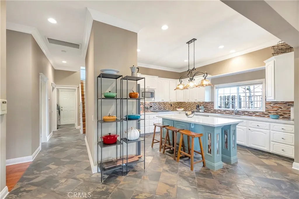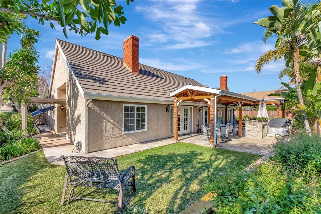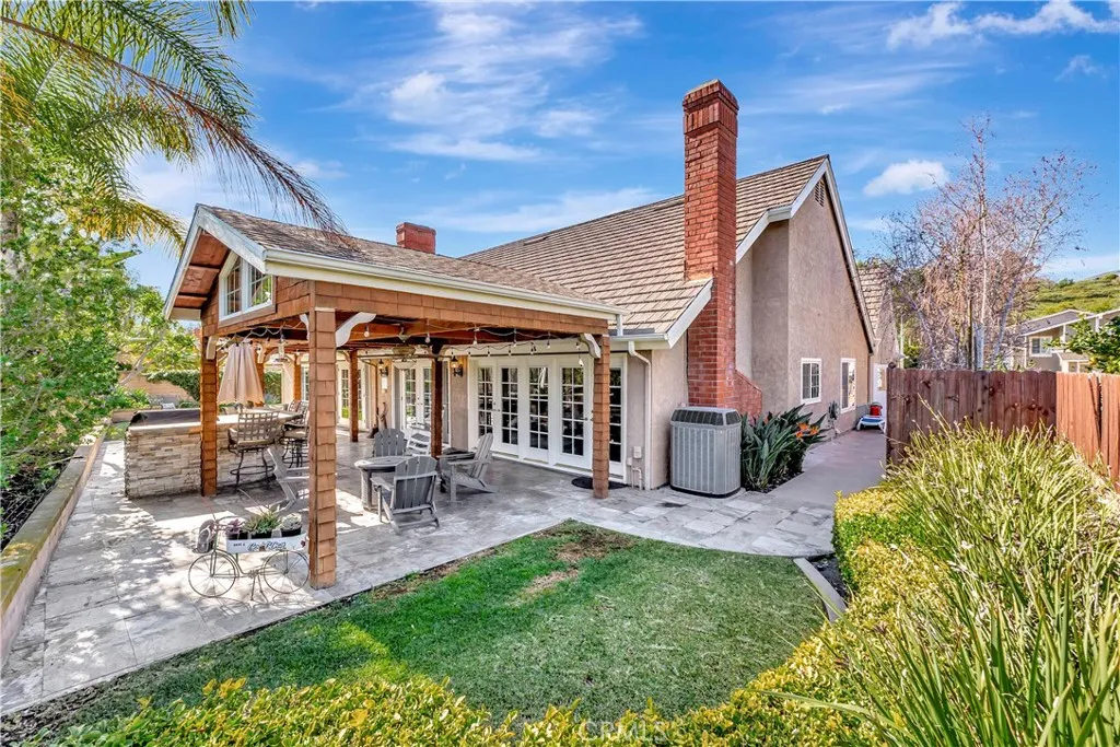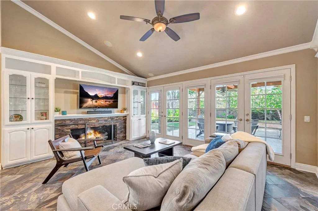 This delightful single story home is situated in the exclusive community of Montbury on the Hill. Nestled in North Lake Forest, this sought-after community features wide streets, customized homes, equestrian and walking trails, two private tennis courts, and two pickle ball courts, all for enhancing your daily enjoyment. Located close to everything, yet you will feel like you are in the country! Simple elegance describes the beauty of this semi-custom home with volume ceilings & French doors throughout; the spacious open floor plan welcomes natural light throughout the entire home. Beautifully remodeled kitchen with stainless steel appliances - gas stovetop, refrigerator, double-oven, microwave, dishwasher; custom cabinetry, gorgeous quartz countertops, spacious center island with wine refrigerator, and custom tile backsplash. A bonus is the adjacent separate pantry area with sink, wine rack, and custom cabinetry. The delightful living room features a wood burning fireplace and custom built-in cabinetry. Entertain in the dining area with coffered ceiling or relax in the family room with fireplace and built-in cabinets. French doors open from each room to the exceptional entertaining back yard. Recessed LED lighting, upgraded light fixtures, and hardwood flooring add to the beauty of this home. The peaceful, spacious master bedroom suite is complimented with volume ceilings, recessed can-lights, built-in cabinetry, and a romantic fireplace. The fully remodeled master bathroom has a separate tub & shower. The large secondary bedrooms, the remodeled secondary bathroom, and the