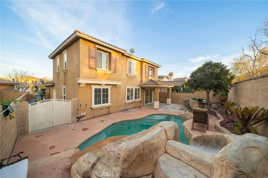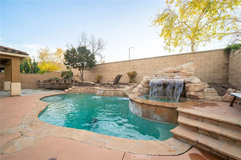Beautiful two-story home located in a desirable Fontana neighborhood! This spacious residence offers 5 bedrooms and 3 full bathrooms, including one bedroom and one full bath conveniently located downstairsperfect for guests or multi-generational living. The home features an open-concept kitchen with a center island that flows seamlessly into the family room, ideal for entertaining. Youll also enjoy a formal living room, providing additional space for gatherings and special occasions. Step outside to your private backyard oasis featuring a sparkling pool and spa, built-in BBQ, and covered patio, perfect for summer entertaining and relaxing weekends. Situated in a quiet cul-de-sac, this property offers added privacy and a welcoming neighborhood feel. Additional highlights include a 3-car garage, generous lot size, and a prime location near the 10 and 15 freeways for easy commuting. Just minutes away from shopping centers, schools, and everyday conveniences. This home truly offers the perfect blend of comfort, space, and location!