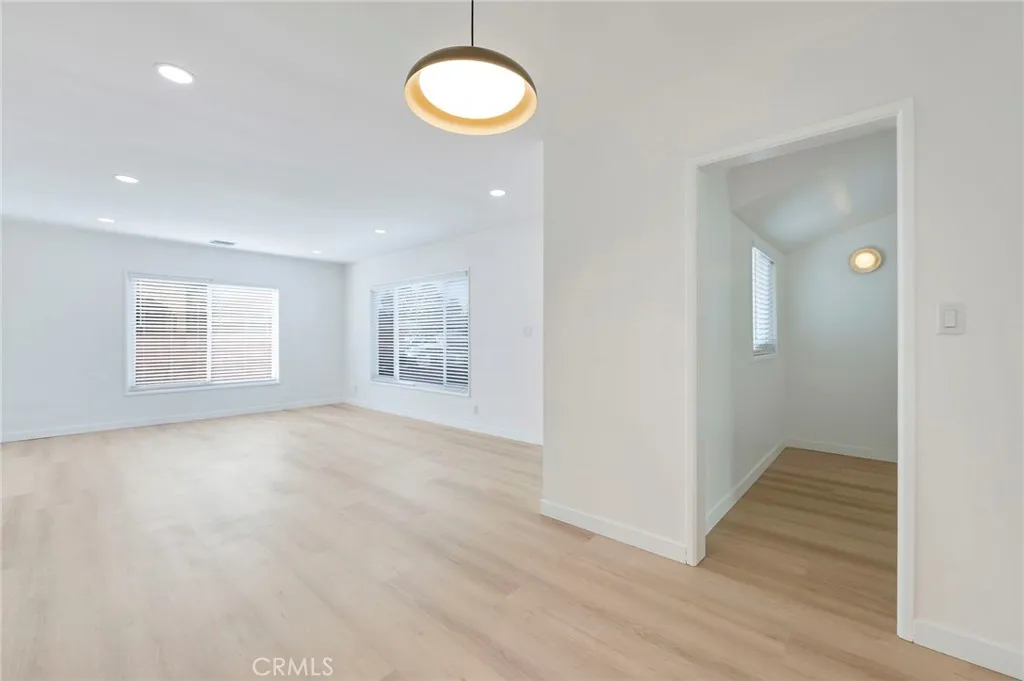 THIS HOME IS A MUST SEE! This rare single-level residence was imagined and designed by @abradesigns to offer an exceptional blend of privacy, space, and modern comfort. Step inside to a bright, open-concept layout filled with abundant natural light, complemented by fresh interior paint, brand-new light oak luxury vinyl plank flooring, and new two-inch Faux Wood blinds throughout. The home features three bedrooms and one bath, plus a valuable bonus office spaceideal for todays work-from-home needs. Enjoy peace of mind under a brand-new roof, providing worry-free living for years to come. The spacious living room is perfect for gatherings and entertaining, complete with recessed lighting and an adjoining dining area. The thoughtfully updated kitchen showcases white shaker cabinetry, quartz countertops, coordinating hardware, a Fireclay sink, stainless steel five-burner gas range, garbage disposal, a cozy kitchen nook, and direct access to the attached two-car garage. The bathroom has been tastefully reinvented with timeless materials and refined detailing, offering a functional and elevated aesthetic. Enhancements include a new bathtub with a sleek surround enclosure, contemporary hardware and fixtures for both the tub and the light oak floating double-sink vanity with matching storage along with soft-close hardware, modern LED lighting, mirror, and porcelain tile flooring. All bedrooms are generously sized and equipped with modern ceiling fans with LED lighting. The primary bedroom offers enhanced privacy, expanded space, and a generous closet. Additional improvements includ