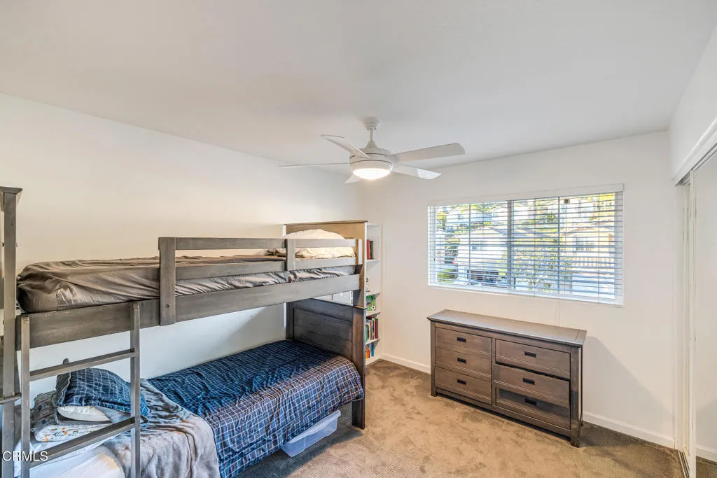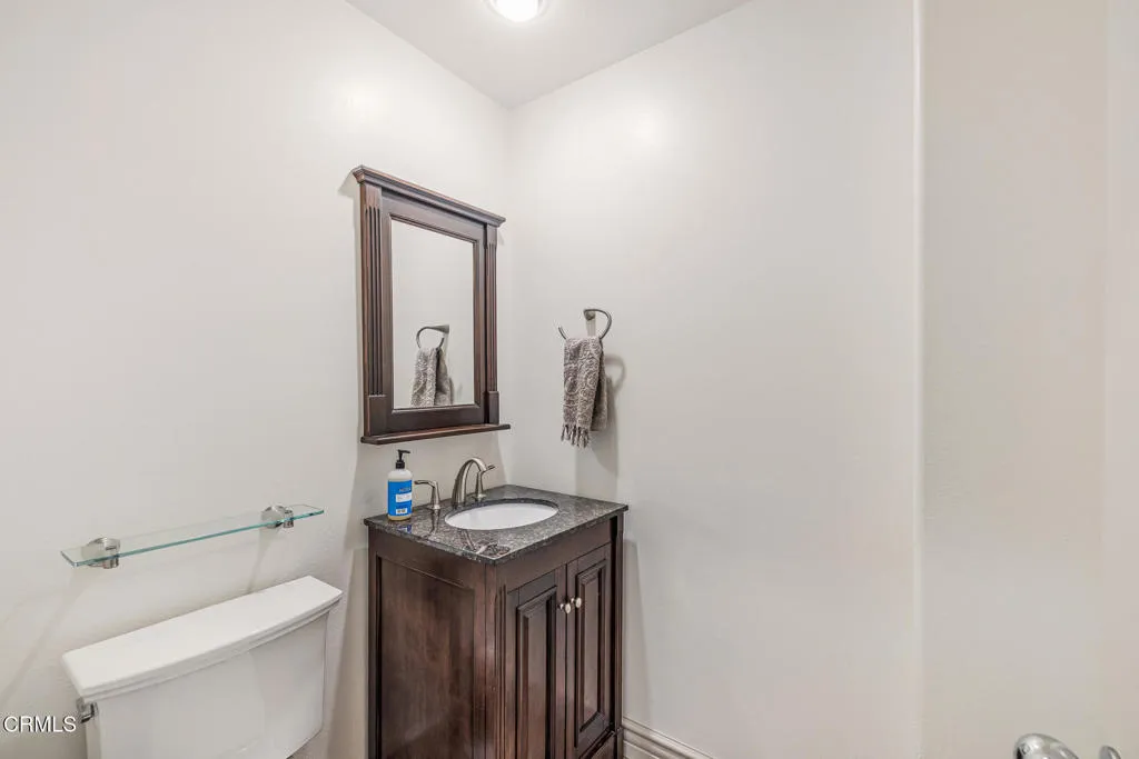 Welcome to 3118 Foxtail Court, a beautifully updated home situated on a cul-de-sac in the gated Lang Ranch area of Eagleridge in Thousand Oaks conveniently located near local schools and Oakbrook Regional Park.From the moment you enter, you'll appreciate the fresh feel created by new flooring and trim work throughout the downstairs and a flexible floor plan designed to adapt to your lifestyle. The versatile front living space functions seamlessly as a playroom, secondary living area, or formal dining room offering both comfort and practicality.The kitchen features updated lighting, creating a bright and inviting space for daily living and entertaining. Adjacent, the laundry room offers newer cabinetry for added storage and organization.Upstairs you'll find two secondary bedrooms with ceiling fans, a bathroom with tub/shower combo and adjustable shower head, additional linen storage, and an oversized primary bedroom. The primary suite includes two walk-in closets, an extended seating area or office space, and sweeping hillside views ideal for enjoying sunsets or seasonal fireworks displays. The attached bathroom has been thoughtfully remodeled with granite countertops, a sleek European glass shower enclosure, and modern lighting.Step outside to a serene backyard retreat with scenic openness and exceptional usability. Mature landscaping creates a private setting highlighted by established fruit trees orange, two lemon (traditional and Meyer), two apple (Gala and Fuji), nectarine, and dwarf lemon. A raised garden box is ready for vegetables or herbs, and a storage shed provide