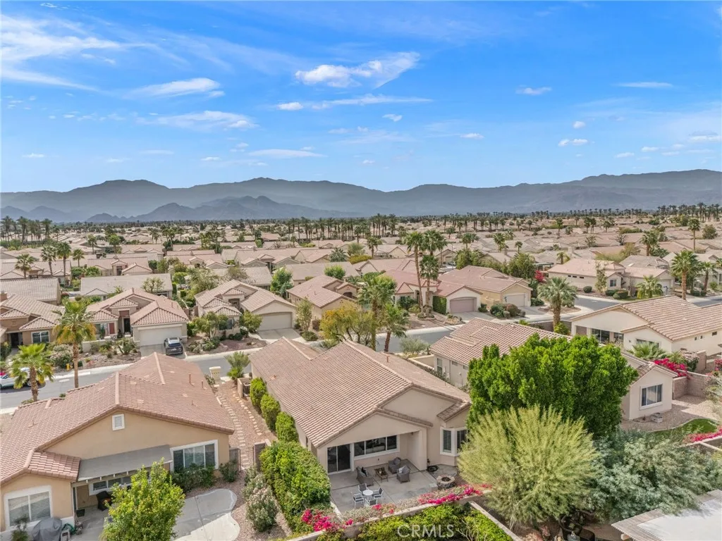 Desert living meets resort-style amenities in this thoughtfully maintained single-level residence located within the gated, 55+ community of Sun City Palm Desert. Offering approximately 1,680 square feet with three bedrooms and two full baths, this home delivers comfortable interiors paired with an active, amenity-rich lifestyle. Bright, open living spaces connect seamlessly to the backyard through expansive sliding glass doors, creating an effortless indoor-outdoor flow ideal for relaxed desert living. Neutral tile flooring and abundant natural light provide a fresh, inviting atmosphere throughout the main living areas. Kitchen is centrally positioned with generous cabinetry, ample counter space, stainless steel appliances, gas range, and breakfast bar seating. Adjacent dining space overlooks the covered patio and garden. Primary suite offers privacy and comfort with plantation shutters, a spacious layout, extended dual-sink vanity, dedicated vanity area, large walk-in shower with bench seating, and substantial walk-in closet. One secondary bedroom is currently configured as a dedicated office, providing flexibility for remote work or creative space. Additional guest bedroom and full bath complete the interior. Covered patio opens to a private backyard accented by a decorative fountain and low-maintenance desert landscapingcreating a peaceful outdoor retreat ideal for morning coffee or evening relaxation. Sun City Palm Desert is a guard-gated, age-qualified community offering two 18-hole golf courses, three clubhouses, multiple fitness centers, indoor and outdoor pools, te