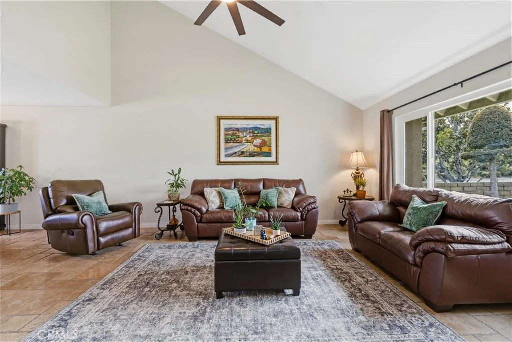 Welcome to 420 S Rolling Hills Place, a spacious two-story home in Anaheim Hills. This five-bedroom, three-bath residence offers over 3,000 square feet on a large lot. Vaulted ceilings enhance the open and bright living and dining areas. The separate family room features a fireplace for relaxing or entertaining. The kitchen features granite countertops, wood cabinetry, recessed lighting, and a large window overlooking the backyard. The covered patio, pool, and expansive deck provide ideal spaces for gatherings or quiet evenings. Block-wall fencing ensures privacy. Upstairs, the primary suite includes a private bathroom, while three additional bedrooms and a large bonus room offer flexible use as an office, media room, or playroom. The front-facing balcony provides a pleasant view for morning coffee. Additional features include indoor laundry, a three-car garage, and a wide driveway for extra parking. The home is conveniently located near Nohl Canyon Elementary, Canyon High, parks, shopping, dining, and the 91 freeway. This property is move-in ready and offers comfortable living.