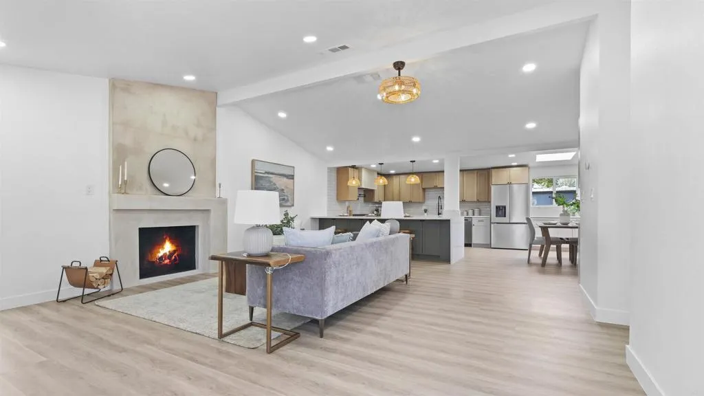 Welcome to this beautifully renovated corner-lot home in the heart of Serra Mesa! This versatile property features 3 bedrooms, 2 bathrooms, plus a dedicated office space in the main home, along with a fully functional 1-bedroom mother-in-law suite, perfect for multigenerational living, guests, or potential rental income. Designed with modern living in mind, the open-concept layout is filled with natural light and anchored by a cozy wood-burning fireplace. The fully updated interior includes new plumbing, new HVAC, and thoughtful finishes throughout. Energy efficiency meets long-term savings with paid-off solar. Situated on a desirable corner lot in a centrally located San Diego neighborhood, this turnkey property offers flexibility, style, and functionality all in one. A rare Serra Mesa opportunity you dont want to miss!