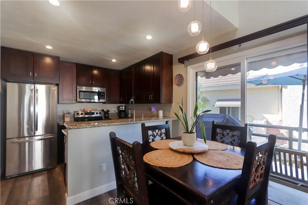 Exceptional Value in Crystal Cay Truly Move-In Ready! Welcome to your light-filled private oasis in the highly sought-after Crystal Cay community of Laguna Niguel. This beautifully designed 2-bedroom, 1-bathroom condo offers the perfect combination of comfort, style, and location just minutes from world-class beaches, shopping, dining, and scenic walking trails. This popular dual-primary layout is ideal for privacy, guests, or flexible living. Step inside to soaring vaulted ceilings, recessed lighting, and an airy open-concept living space enhanced by luxury vinyl flooring throughout. The upgraded kitchen features granite countertops, enhanced cabinetry, and flows seamlessly into the spacious living room highlighted by a striking tile-faced gas fireplace. Additional upgrades include retrofitted windows and sliding doors, improving both energy efficiency and comfort. The versatile floor plan offers a generously sized main-level bedroom with a huge walk-in closet, upgraded ensuite bath, and convenient access to the in-unit washer and dryer. Upstairs, the second primary suite includes a large mirrored closet, dedicated study nook, private bathroom, and direct access to an expansive rooftop patio. Designed for both entertaining and relaxation, the rooftop deck offers peaceful tree-top views and glimpses of the surrounding hills. Additional storage closets on both patios add to this models reputation for exceptional storage space. This super-private upper-level unit is tucked into a desirable back-corner location with abundant guest parking. The home includes a covered carport