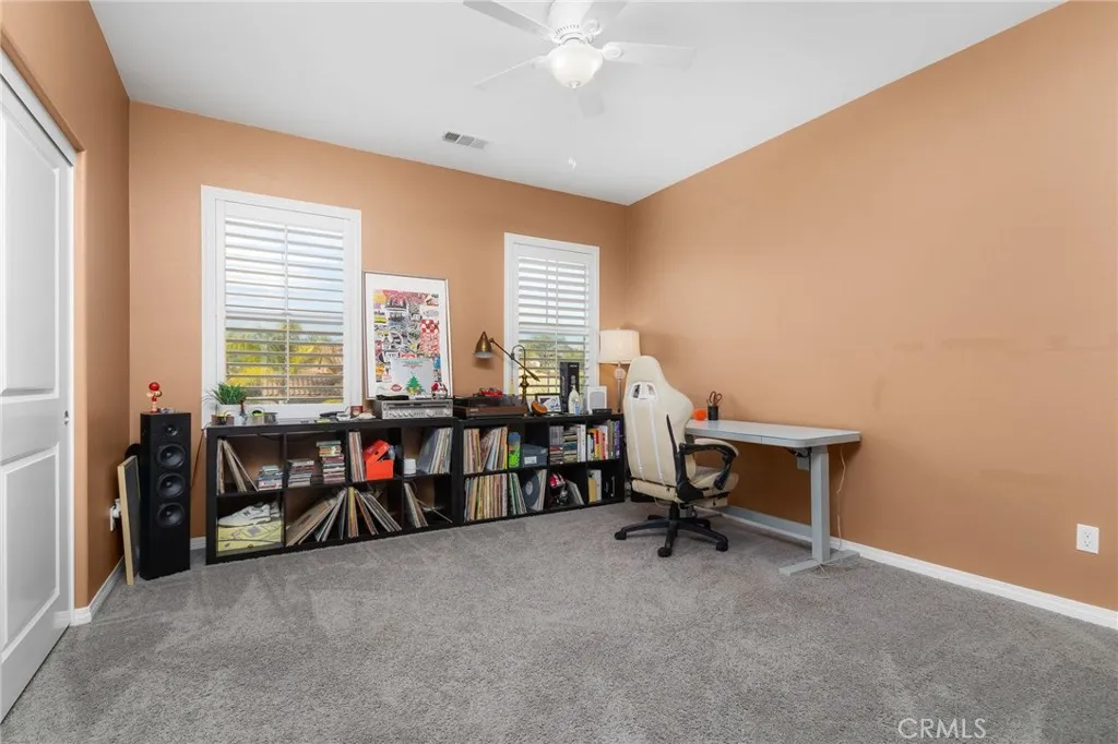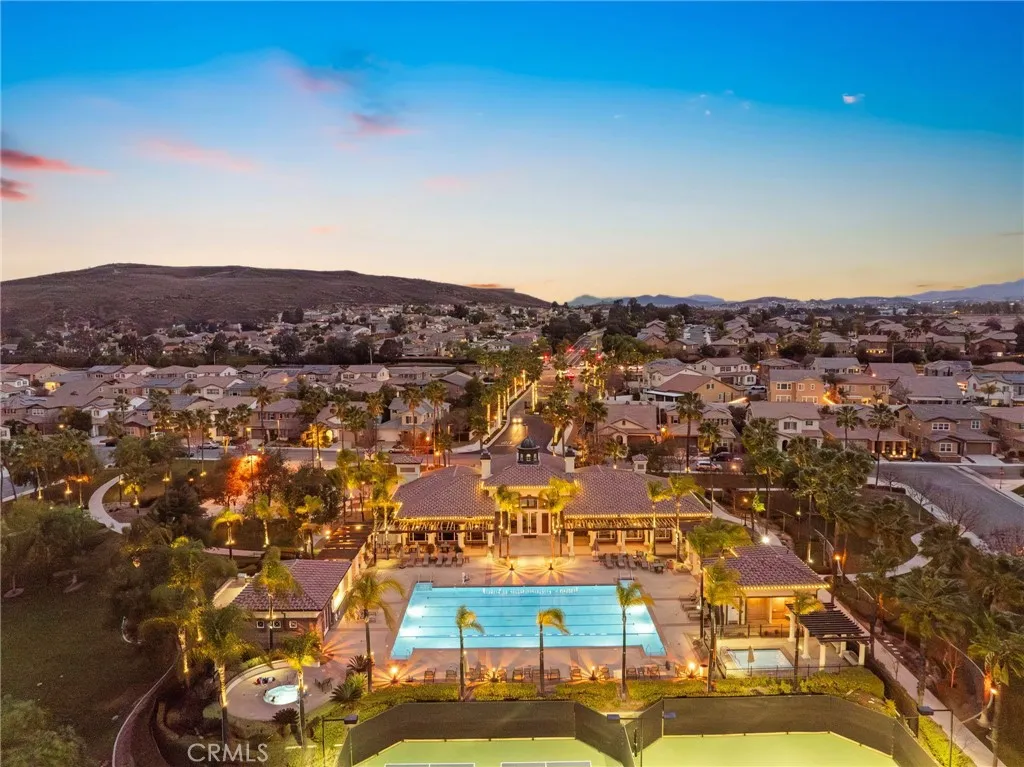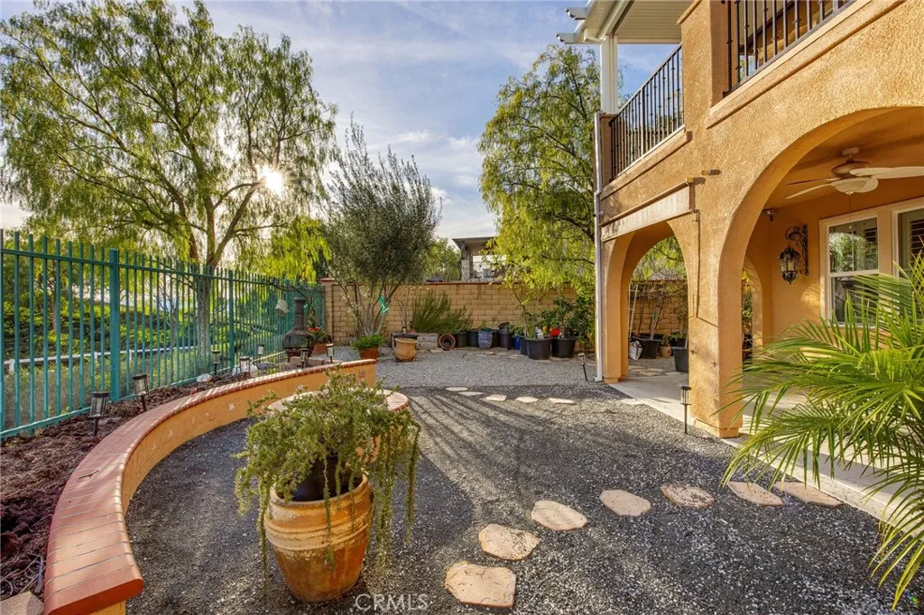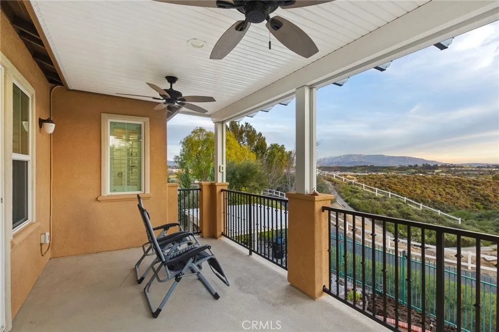Welcome to the Wine Country Cottage! Located in the highly sought-after gated community of Roripaugh Ranch, this beautifully upgraded home sits on a premium view lot with only one direct neighbor, offering privacy and serene surroundings. Step through the beveled glass front door and onto 6 wide luxury vinyl plank flooring that flows throughout the open-concept layout. Offering nearly 2,700 square feet, this spacious residence features 4 bedrooms, 3.5 bathrooms, and a versatile upstairs loft. The main level includes a private guest suite with a bathperfect for multigenerational living or visiting guestsalong with a convenient powder room. The expansive kitchen is the heart of the home, showcasing a large center island, white thermofoil cabinetry with glass doors and interior lighting, granite countertops, pendant lighting, a custom frosted glass walk-in pantry door, and stainless steel appliances including a gas cooktop and double ovens. The kitchen seamlessly opens to the dining and family rooms, creating an ideal space for gathering and entertaining. Through the California Room, enjoy year-round shade and effortless indoor-outdoor living. The backyard offers dazzling views, lush garden landscaping, and an expansive side yard complete with a built-in bocce ball courtperfect for hosting family and friends. Upstairs, the views continue from the spacious primary suite featuring a custom-covered private deck with dual outdoor ceiling fans and recessed lighting. The luxurious en-suite bath offers dual sinks, a vanity area, soaking tub, and glass-enclosed shower. Two additional
