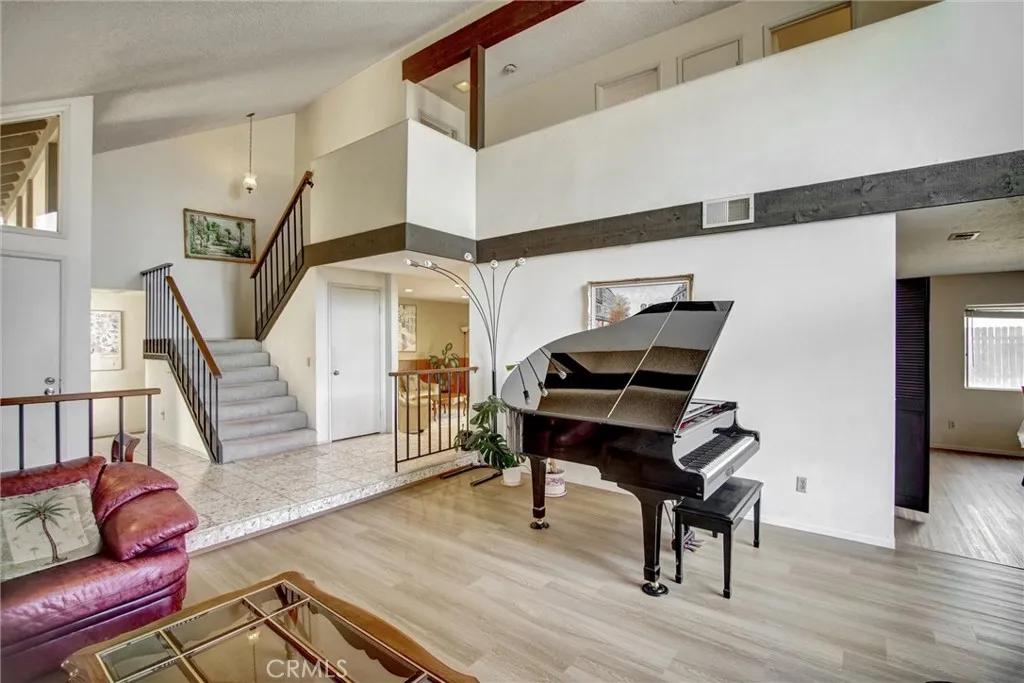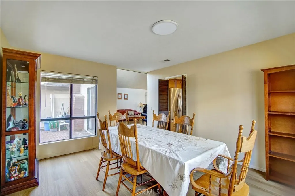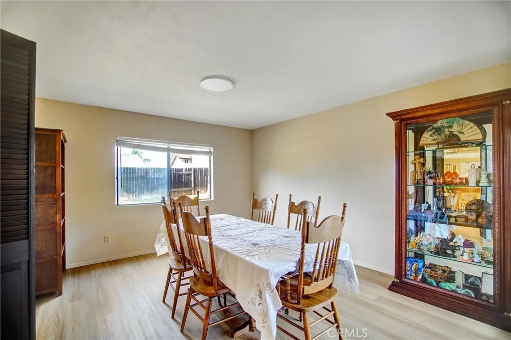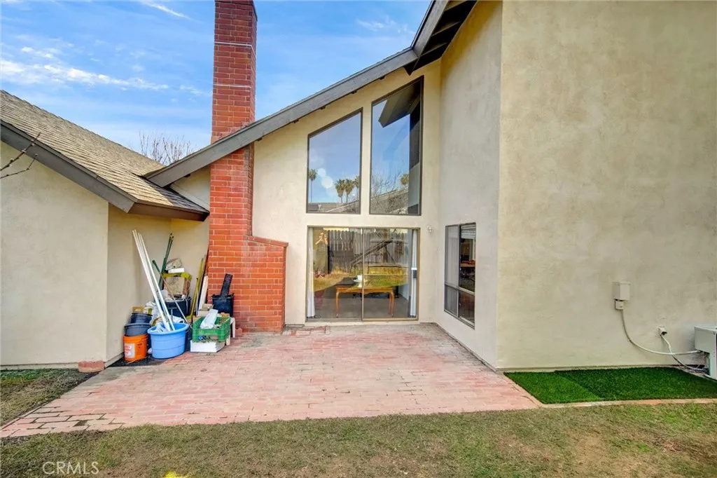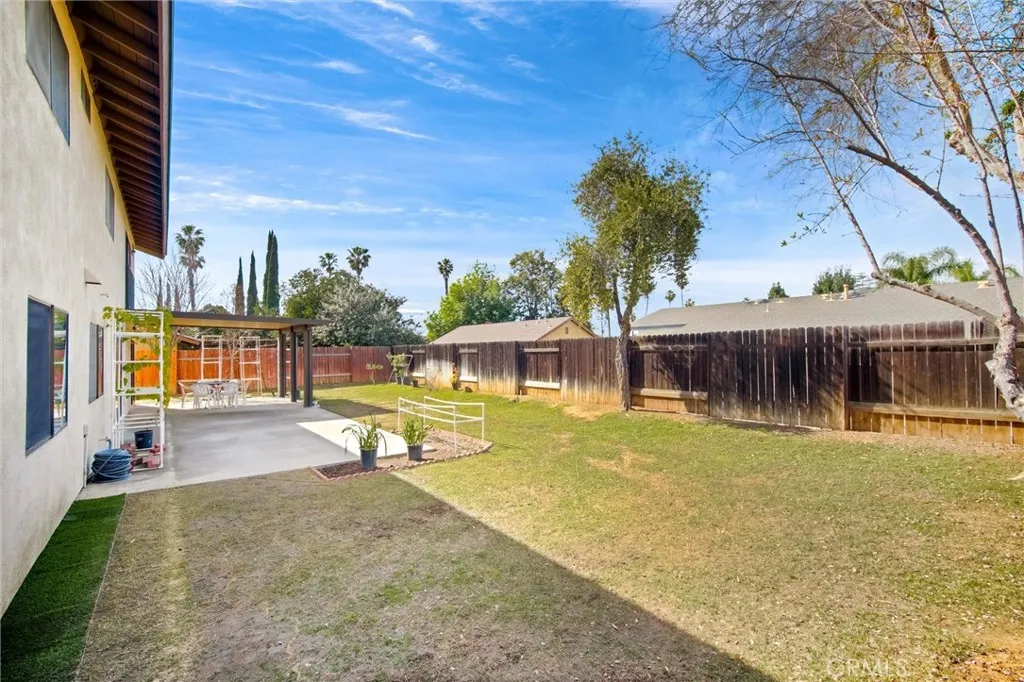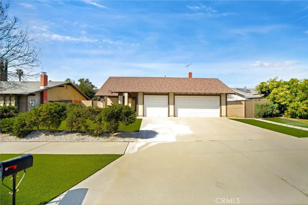 Nestled on a quiet cul-de-sac in a desirable neighborhood, this spacious two-story home offers the perfect blend of comfort, functionality, and future potential. Step inside to a welcoming living room featuring a vaulted ceiling and an impressive floor-to-ceiling brick fireplace that instantly becomes the heart of the home. Natural light pours in through patio doors that open to the backyard, creating a seamless indoor-outdoor flow ideal for entertaining or relaxing evenings at home. The thoughtfully designed floor plan includes 4 bedrooms and 3 bathrooms. The downstairs bedroom and full bath is perfect for guests, multi-generational living, or a private office. It features its own sliding glass door with direct backyard access, offering added flexibility and convenience. The large kitchen is truly the hub of the home, complete with recessed lighting, abundant counter space, and a countertop bar that opens to the family room so you can cook, host, and stay connected all at once. A separate formal dining room provides an elegant space for gatherings, while the adjoining family room also offers sliding doors to the backyard. Upstairs, the spacious primary suite serves as a relaxing retreat, highlighted by a vaulted ceiling that enhances the sense of space and light and with a generous walk-in closet attached. Additional highlights include artificial grass in the front yard for low-maintenance curb appeal, a three-car garage, and an oversized driveway offering plenty of parking and storage. Bonus - No HOA and No Mello-Roos! With its versatile layout, generous living spaces, an