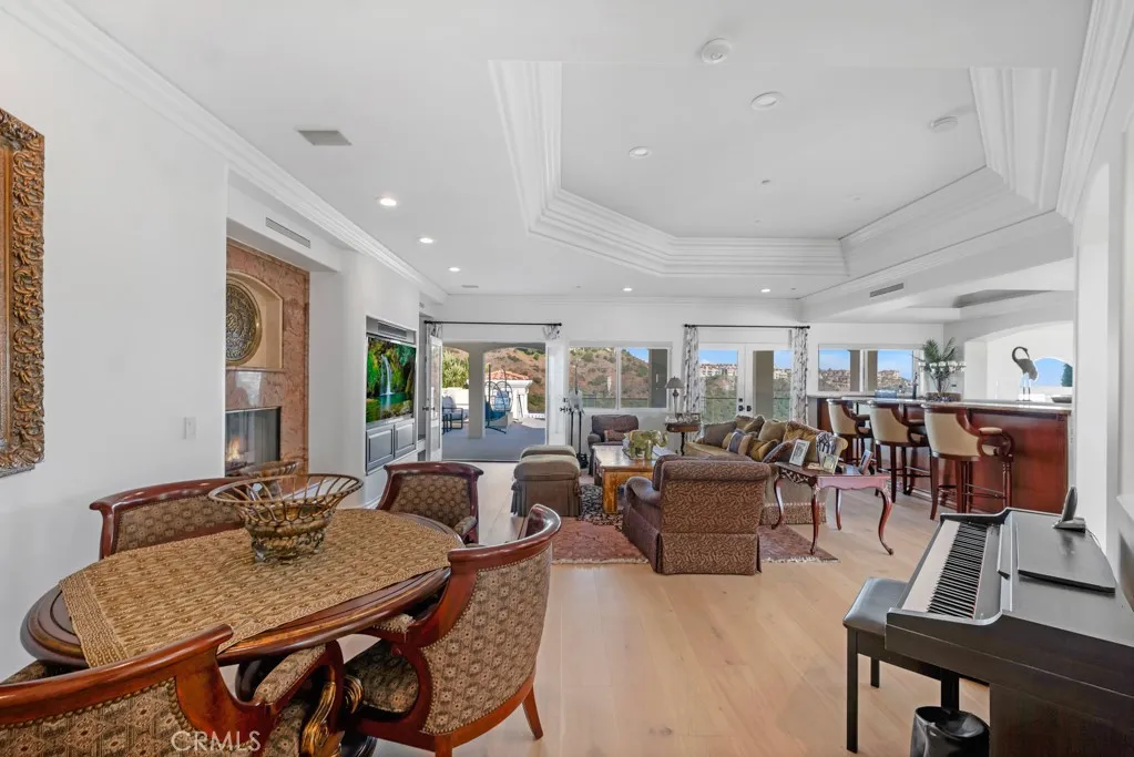 Welcome to Paradise, often called the Mini Ritz-Carlton! One of the rarest properties perched atop a hilltop with only two other properties with 360 degree ocean and canyon views in the Laguna Sur Gated Community. This 6600 SF 6 Bed, 8 Bath Mediterranean Majesty sits on a half acre of sheer delight perfect for entertaining and enjoying coastal living at its finest. Reimagined by award winning designer Nathan Fischer to preserve the original charm while adding modern elegance throughout. Fall in love with the seamless flow designed to replicate the shape of a heart with stunning architecture and views in every corner. Enter to custom made dual iron stairs and chandelier that opens to a stunning entertainment room with soaring ceilings flowing to a private dining room on one side and an elegant library on the other. Chef's will delight with all new Viking appliances, including 3 ovens and a butler's kitchen as well as a butler elevator. The kitchen flows to an adorable family room, large laundry room with new large capacity washer dryer and an attached 3 car garage. The main floor also boasts three bedrooms with attached bathrooms, one of which enjoys stunning ocean views as well as a pool room and gym. The second floor enjoys a massive entertainment room complete with a bar and fireplace. Two large sized bedroom suites and jaw dropping master suite complete the second floor. The master suite enjoys a fireplace, a seating area with ocean views, a massive walk-in closet and a bathroom with dual showers, a jet tub and dual vanities. The resort style outdoor areas are a true ent