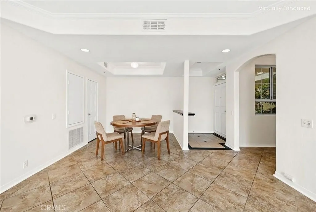 ***SELLER OFFERING $10K CREDIT FOR NEW FLOORING*** Immaculately maintained and filled with natural light, this inviting two-bedroom condo offers the perfect blend of comfort, flexibility, and location. From the moment you enter, youre welcomed by an expansive open-concept living and dining area where sunlight pours through a large sliding glass door, creating a bright and uplifting atmosphere throughout the day. Just off the main living space, a thoughtfully positioned niche provides the ideal setting for a home office, reading corner, or creative studioan increasingly valuable feature for todays lifestyle. Near the entry, the modern yet charming kitchen features granite countertops, ample cabinetry, and a functional layout that flows seamlessly into the main living areas. A discreet laundry closet with stacked washer and dryer adds convenience without compromising space. Warm neutral tile anchors the common areas, while rich, medium-tone wood-style flooring brings warmth and comfort to the bedrooms. The spacious primary suite offers a true retreat, complete with a generous walk-in closet and a spa-inspired ensuite bathroom featuring dual sinks and a soaking tub designed for relaxation. The secondary bedroom enjoys abundant natural light, a mirrored sliding-door closet, and tranquil pool views. A beautifully appointed hall bathroom with chic vanity, stylish lighting, and a tub/shower combination serves guests and residents alike. Residents enjoy access to desirable community amenities including a sparkling pool, recreation room, and sauna. The controlled-access garage provi