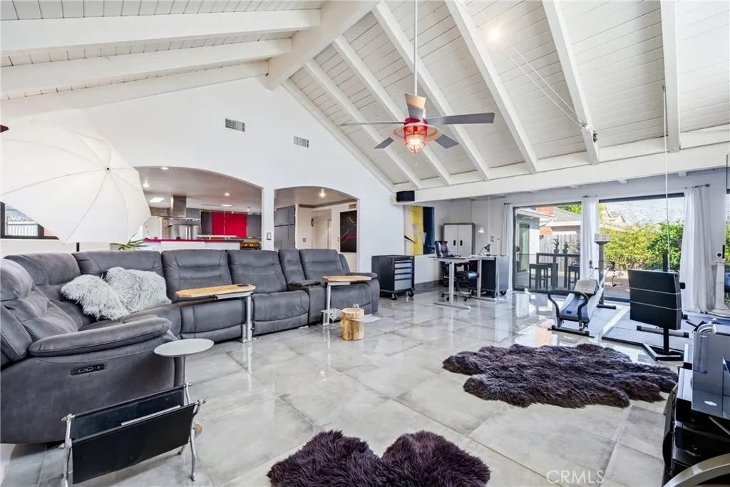 Nestled on a quiet interior tract street in a sought-after neighborhood,this expanded single-story home offers privacy,space,a prime coastal location & access to HBs top-ranked schools.An extended driveway,low-maintenance landscaping & inviting curb appeal set the tone.Inside,the expanded floor plan features a remodeled modern kitchen w/Euro flair,showcasing exotic quartz & granite countertops,elevated bar seating,oak wrapped in stainless steel framed cabinets,stained hardwood flooring,a built-in center island w/added prep,storage & seating,a professional 5-burner gas range w/hood,high-end stainless steel appliances & a solar tube for natural light.The kitchen flows into a nicely sized dining room w/a sleek gas fireplace & contemporary tile.The heart of the home is the impressive 468 sqft permitted addition w/vaulted ceilings & upper windows,creating a bright,expansive living & family room ideal for relaxing or hosting gatherings.A sliding door opens to the low-maintenance backyard,perfect for morning coffee,intimate get-togethers or weekend BBQs,complete w/lemon & lime trees.The serene owners suite features mirrored closet doors,a spacious nook ideal for a large walk-in closet,ceiling fan,multiple accent windows for abundant light & an upgraded en-suite bath w/step-in shower/tub,skylight & vanity,creating a comfortable private retreat.Down the hall are two secondary bedrooms w/new carpet & ceiling fans.One offers a sliding door to the backyard for added light & flexibility,while the other includes a chic closet w/custom sliding doors.The full hallway bath has been recently