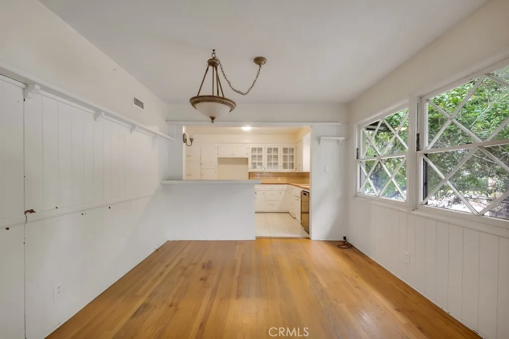 So Much Potential! Discover this charming single-story, 2-bedroom, 1-bath home ideally situated on a corner lot south of the Boulevard in desirable Woodland Hills. Rich in character, the home welcomes you with beautiful wood-beamed ceilings, a cozy corner fireplace, and classic hardwood floors. The kitchen opens seamlessly to the dining area, creating a warm and inviting space for dining.Both bedrooms are generously sized and feature mirrored closet doors and built-in shelving. A two-car garage offers laundry hookups and convenient direct access to the home. Enjoy a prime location close to popular restaurants, world-class shopping at Westfield Topanga Mall and The Village, and easy access to the 101 freeway. An exceptional opportunity with endless possibilities in a sought-after neighborhood.