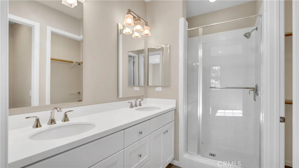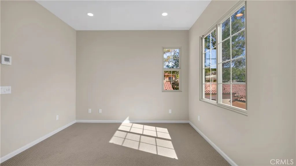 DETACHED HOME ON A PREMIUM LOT tucked quietly within Luna at Portola Springs, with over 1,500 sqft of living space offers the kind of privacy that is hard to find. With no neighbors directly in front of the unit, your view opens to lush greenery instead of another front door. It feels calm, private, and intentionally positioned. As you step inside, you immediately notice the warmth of hardwood floors at the entry. The main level features a junior suite with its own ensuite bath, ideal for guests, extended family, or even a quiet home office. It provides separation while still feeling connected to the rest of the home. Upstairs, the second floor becomes the heart of daily living. Designed with a true great room layout, the living, dining, and kitchen spaces flow seamlessly together. Natural light fills the room, and from the living area you look out to mature landscaping rather than neighboring windows. It is bright, open, and easy to live in. The kitchen is timeless and functional with white shaker cabinetry, quartz countertops, and a generous center island with counter seating. Under cabinet lighting adds a soft glow in the evenings, and upgraded Bosch appliances elevate everyday cooking. Just off the dining area, a private patio creates the perfect extension of the space, whether it is morning coffee or winding down at the end of the day. On the third level, you will find two additional ensuite bedrooms, including a spacious primary suite with a walk in closet and peaceful views of greenery. It feels tucked away and elevated, like your own private retreat. The additional