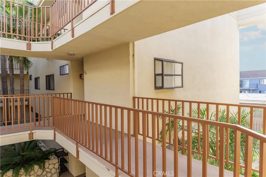 WE'RE BACK!! VACANT AND FRESHLY PAINTED. Spacious and light-filled 2-bedroom, 2-bath end unit condo offering approx. 800 sq ft of comfortable living in a quiet, secure building. West-facing orientation provides abundant natural light throughout the home. Recently updated with new laminate flooring in the main living areas and carpeted bedrooms. The living room features a cozy gas fireplace and direct access to a private balcony, also accessible from the primary bedroom. The primary suite includes its own en-suite bathroom, mirrored closet doors, and built-in shelving. Both bathrooms are generously sized. The kitchen offers granite countertops, tile flooring, a breakfast bar, window box, dishwasher and stove. Additional features include ductless air conditioning, double-pane windows, cable and internet readiness, and the option to add a stackable washer/dryer. One assigned parking space is included in a secured garage. Pet-friendly community with a conveniently located laundry room on the same floor. Ideally situated near shopping, dining, entertainment, beaches, golf courses, CSULB, Belmont Shore, the Queen Mary, Shoreline Village, The Pike, and easy freeway access to the 405, 22, and 710. Schedule your showing today and call it home.
