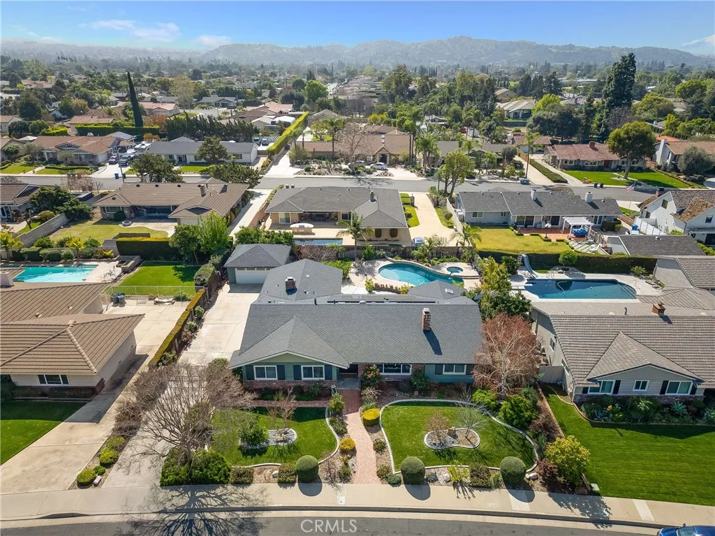 Nestled in a highly desirable Glendora neighborhood, this spacious single-story ranch home combines scenic mountain views, thoughtful updates, and a backyard designed for relaxing and entertaining. Featuring 4 bedrooms, 3 bathrooms, and approximately 2,657 square feet, the home showcases an easy-flowing layout designed for both everyday living and gathering with family and friends, with abundant natural light enhancing the generous living spaces throughout. Step through the double-door entry into an inviting living room highlighted by a cozy fireplace and expansive picture window framing stunning views of the San Gabriel Mountains, while the adjacent dining room provides an elegant setting for both casual meals and special occasions. At the heart of the home, the updated kitchen showcases granite countertops, custom cabinetry, and select stainless steel appliances, opening to a spacious eating area and family room anchored by a brick fireplace with raised hearth creating a welcoming great-room style space ideal for entertaining, holidays, or relaxed everyday living. The spacious primary suite offers a peaceful private retreat, complete with a generously sized bedroom and full ensuite bathroom designed for comfort and functionality. Adding exceptional versatility, an additional bonus/game room features custom built-in bookshelves, a full attached bathroom, and closet space, providing wonderful flexibility for a guest suite, home office, media room, or extended living area. Step outside to a beautifully refreshed backyard retreat complete with new landscaping, updated lighti