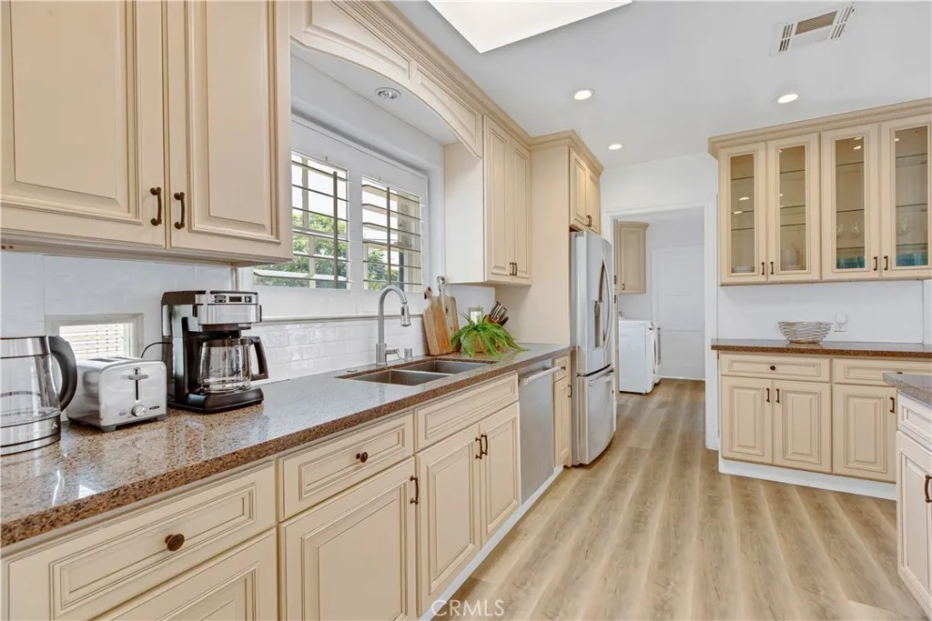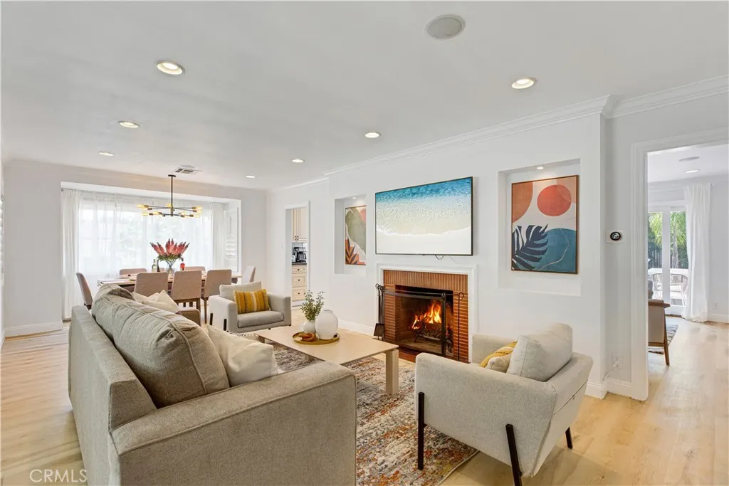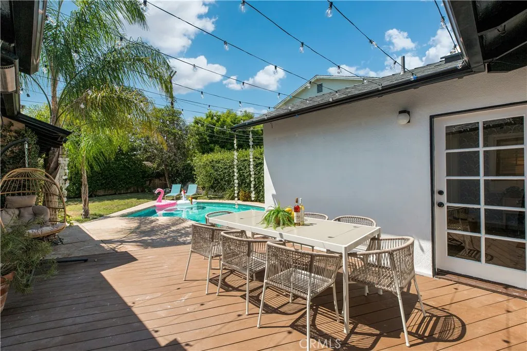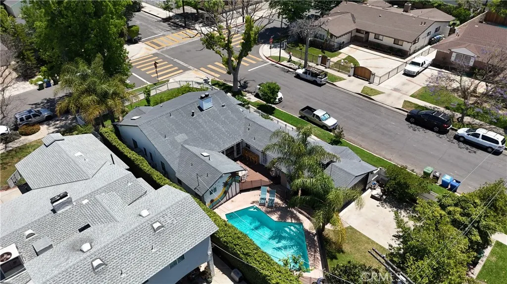 Welcome to this beautifully updated single family Mellenthin "Birdhouse" ranch in prime Sherman Oaks, blending timeless midcentury charm with thoughtful modern upgrades. This 3 bedroom, 3 bathroom home offers 1,811 sqft of living space on a spacious 7,377 sqft lot, featuring two fireplaces, custom plantation shutters, recessed lighting, and wide plank wood flooring throughout. The chefs kitchen boasts granite countertops, stainless steel appliances, and soft close cabinetry, while the sunlit dining area includes a bay window perfect for entertaining. The inviting family room opens to a private backyard with a sparkling pool, custom mural, wood deck, and hanging chair swing. Additional features include updated bathrooms with designer finishes, dual living areas, an indoor laundry room, attached 2 car garage, gated driveway, EV ready setup, and lush landscaping with citrus trees, all in a prime location near Whole Foods, dining, shopping, local parks, with easy access to freeways, schools, and everyday essentials.