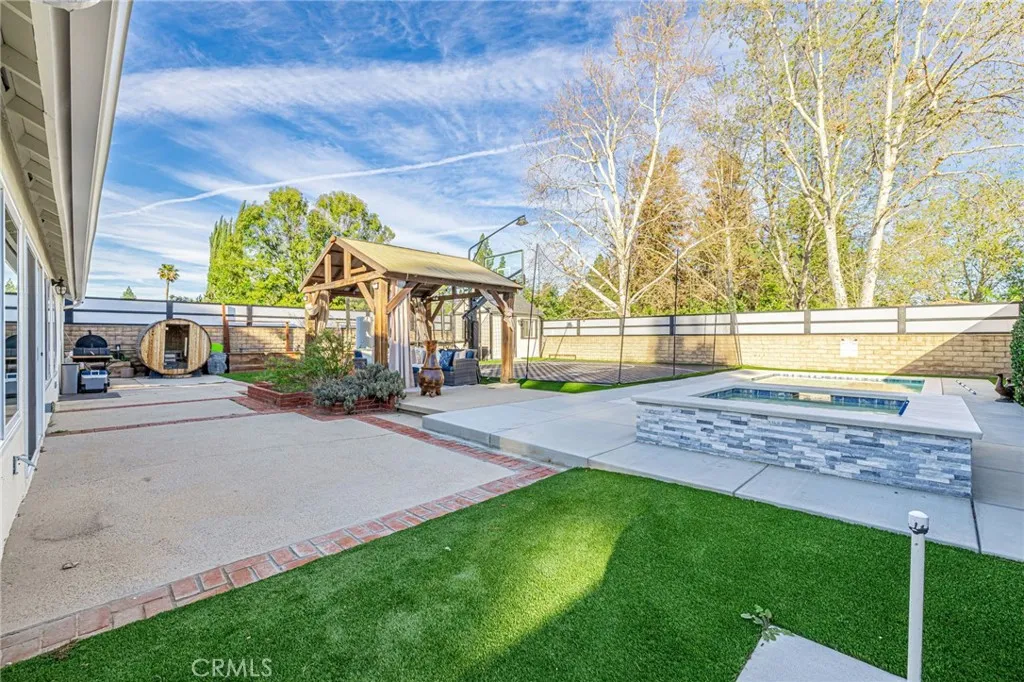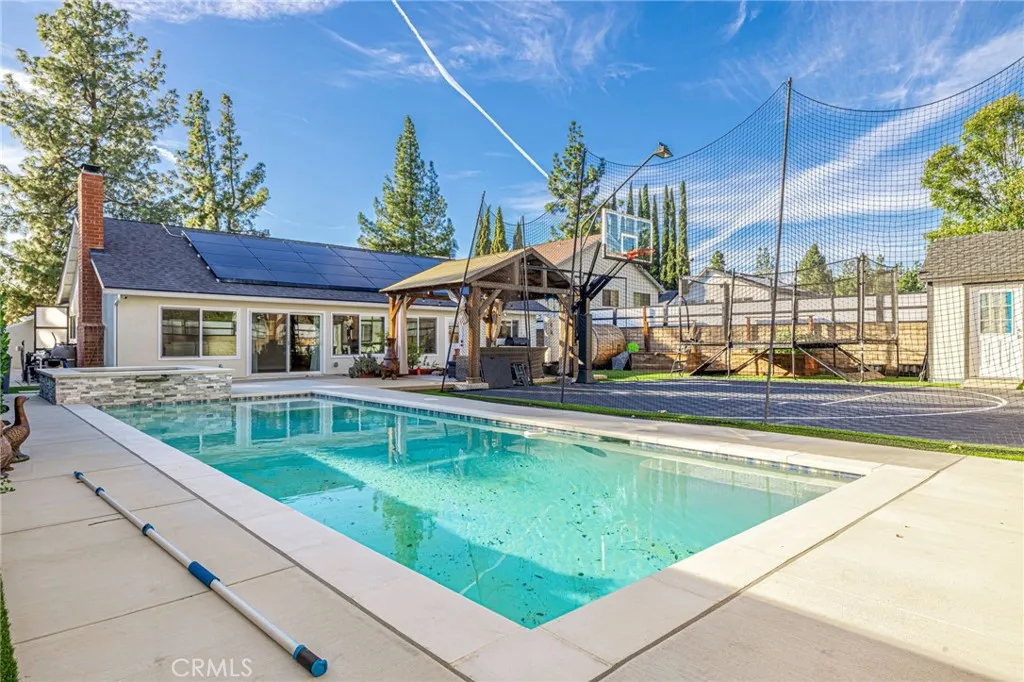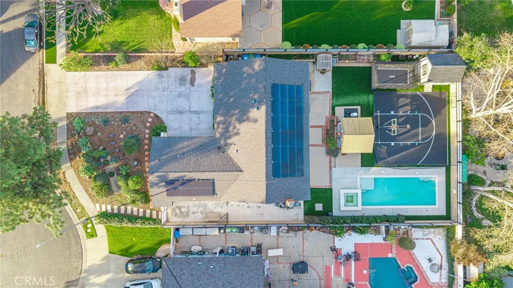 SHOW STOPPER ALERT!!! Welcome to PARADISE, where modern convenience meets LUXURY!! 2 HOMES!! ENERGY EFFICIENT, EXTENSIVELY UPGRADED MAIN HOME 3+2 w/ NEWLY CONSTRUCTED, READY TO MOVE-IN 1+1 ADUHAS SEPARATE ADDRESS, HIGH END FINISHES, 30 FULLY PAID SOLAR PANELS, TESLA E/V CHRGR, NEW HEATED-POOL, BASKETBALL 1/2 court(Mega-Slam), SAUNA *NEW GATES *LOCATED on a QUIET CUL-DE-SAC, fully renovated (8x8)Shed/BONUS SPACE w/ small fridge. From the moment you arrive, the beautiful landscaping and newly paved driveway offers generous space for 6 cars, ensuring a warm and effortless welcome for your visitors. The main homes brand new modern double doors add security and tie in perfectly with this newly renovated, spectacular SINGLE-STORY. New crown molding/baseboards and brand-new engineered flooring that will last a lifetime! Previous owner installed a NEW ROOF, NEW WINDOWS, A/C/HEATING & UPGRADED the ELECTRICAL PANEL. Relax by the glow of the fireplace in the heart of the home/Living room that opens up to the designer-curated farmhouse kitchen that was engineered for the serious chef which flows effortlessly into the dining area to create a seamless indoor-outdoor hosting experience. Boasting professional-grade appliances, large island w/built small oven, Quartz ctops, high-end stainless-steel appliances, WOLF convection oven, pot filler,white shaker-style cabinetry, this culinary masterpiece flows into a sun-drenched dining area, creating a perfect circuit for entertaining guests while overlooking the massive backyard. The spacious primary suite offers a private upgraded bathroom, LED