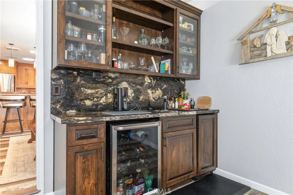 LOCATION AND VIEWS!! Welcome to the ultimate in lake living. This property offers the flexibility to enjoy it as a shared multi-family getaway or a spacious single-family home. Located on a 0.34-acre lot inside the gated Heritage Ranch community at Lake Nacimiento, this property blends comfort, style, and easygoing lake living, all surrounded by beautiful mountain views and protected open space. Theres plenty of parking for all your trailers, vehicles, and lake toys, on the driveway and an oversized garage for a wake surf boat, trailer or extra storage. A separate 575 sq. ft. bonus suite (not included in the homes square footage) includes a private gym, office, and half bathperfect for working remotely, staying active, or creating your own hangout space. Inside, high beamed ceilings, two stone fireplaces, a wet bar, and two roomy living areas make the home feel warm, open, and ready for entertainment. The kitchen is built for both everyday meals and lake-day gatherings, featuring a center-island cooktop, double ovens, stainless steel appliances, a walk-in pantry, built-in buffet, and breakfast bar. Two primary suites each offer walk-in closets, dual vanities, walk-in showers, and sliding doors that open to outdoor spacesone even includes a private lounge or office area. A third guest bedroom with a full bath and a separate laundry room add to the homes easy, functional layout. Step outside and enjoy incredible views from the private patio, complete with a large, covered space for dining, a covered hot tub, and plenty of room to relax and take in the surrounding scenery and