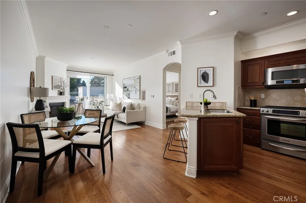 Welcome to Rolling Hills Villas, a well-maintained and highly desirable 55+ community located in the heart of Rolling Hills Estates. Unit 302 offers comfortable, low-maintenance living in one of the Palos Verdes Peninsulas most convenient and walkable settings. This light-filled home features an open living and dining area with a cozy fireplace and direct access to a private balcony with greenery views, ideal for morning coffee, fresh air, or a quiet moment at the end of the day. The kitchen is thoughtfully designed with granite countertops, stainless steel appliances, and ample cabinetry, providing both function and ease for everyday living. The primary bedroom is generously sized with truly excellent closet space and is complemented by a full bathroom with classic finishes. Additional highlights include in-unit stackable washer and dryer, air conditioning, recessed lighting, and secure gated parking. Elevator access adds everyday convenience. Rolling Hills Villas is known for its welcoming common areas, including a beautifully appointed central atrium with a tranquil fountain and an upper level deck featuring tables, and lounge seating - perfect for entertaining or relaxing with neighbors and friends. Ideally located just steps from shopping, grocery stores, pharmacy, medical offices, restaurants, the library, post office, Norris Theatre, Peninsula Center, Promenade PV, and movie theaters. Scenic hiking trails, golf courses, and local parks are only minutes away. A wonderful opportunity to enjoy easy Peninsula living in a wonderful community with excellent amenities, a st
