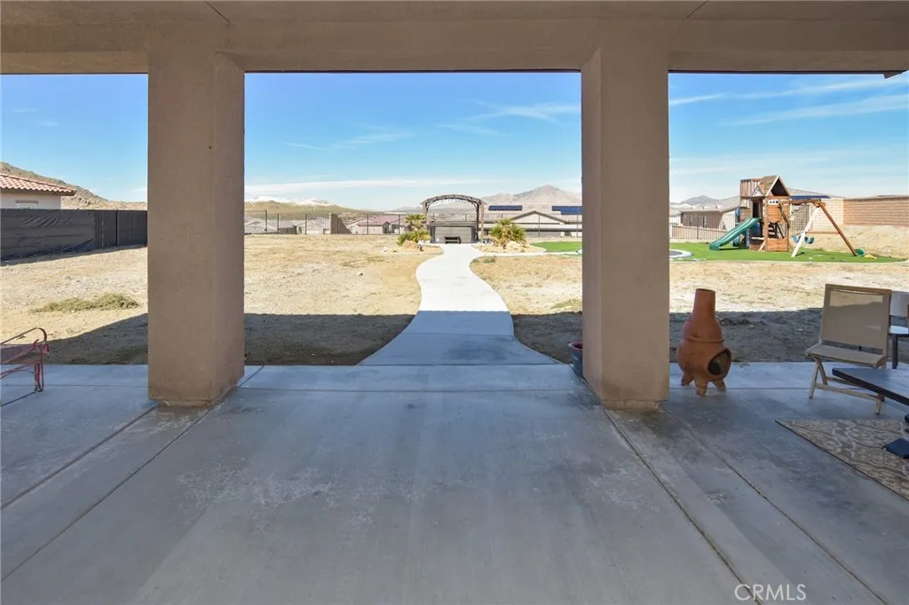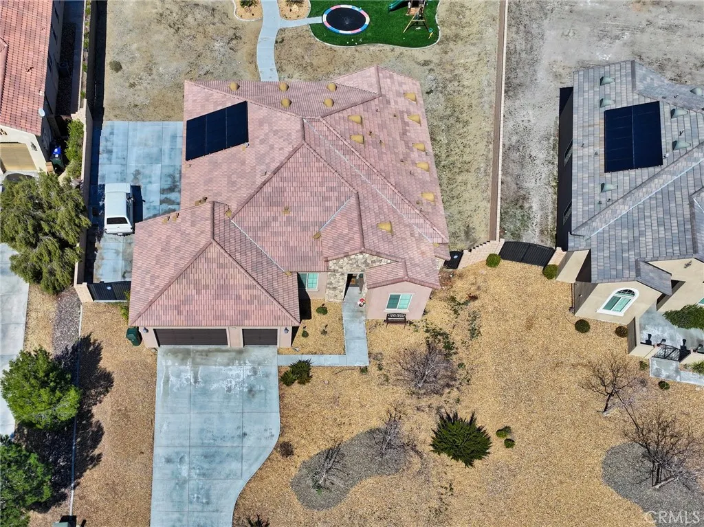 Single-story 2020 home with OWNED solar, RV parking, and mountain views in gated Vista del Sol Estates, 2,920 sq ft, 4 bedrooms, split floor plan, chef-style kitchen with oversized island, and only $50/month HOA. Located in one of Apple Valleys most desirable gated communities, this nearly new 4 bedroom, 3 bathroom home offers modern construction with the advantage of being fully finished without the added cost of new build upgrades. Built in 2020 with solar installed at construction, all major systems including heating and air are just five years old, delivering energy efficiency and long-term value. Inside, high ceilings and an open layout create a bright and spacious feel. The split floor plan places the primary suite privately away from the secondary bedrooms for added comfort and separation. The chef-style kitchen features quartz countertops, a walk-in pantry, and a large oversized island that anchors the living space, ideal for gatherings and everyday living. Step outside to a fully landscaped backyard with a 576 sq ft patio, breathtaking mountain views, and stunning desert sunsets. The generous 21,320 sq ft lot also includes RV parking, a 3-car garage, and an extra-wide driveway for additional vehicles. Unlike nearby brand-new homes, this property already includes: Owned solar system Completed landscaping Installed window coverings RV parking ready No construction delays . No out-of-pocket upgrade costs Additional highlights: Gated community Private water, public sewer Low $50/month HOA If youve been considering new construction in Vista del Sol Estates, this