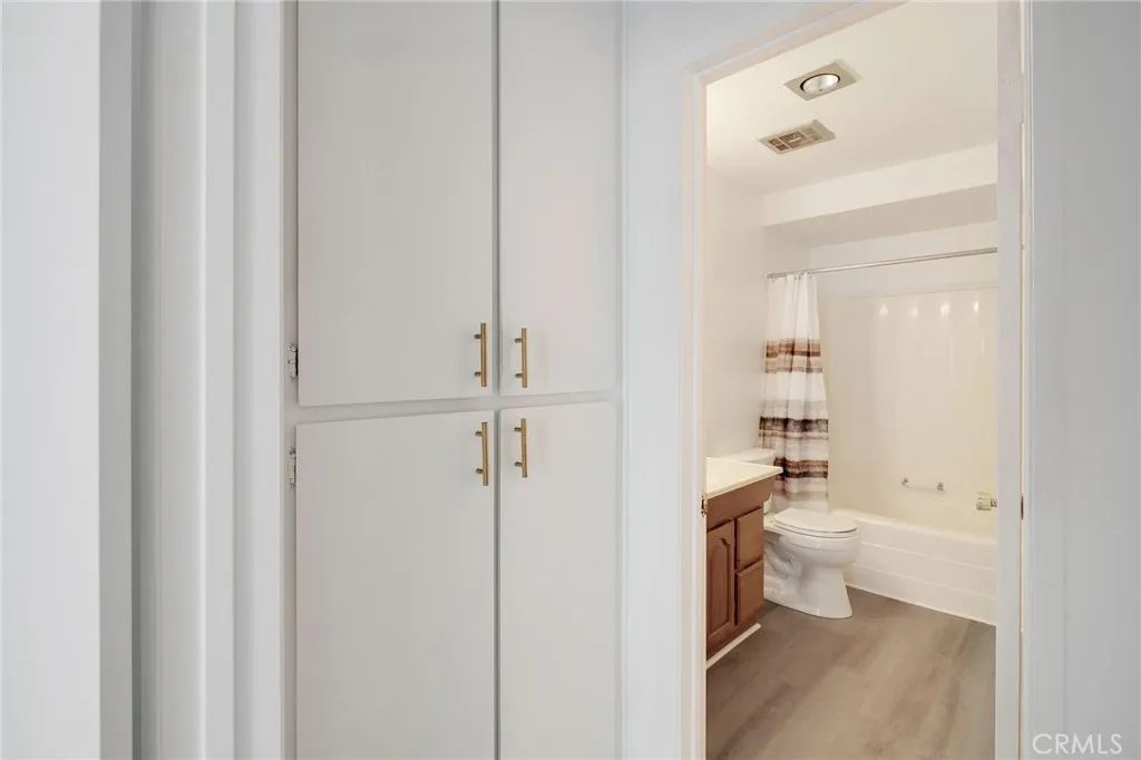 Experience top-floor, resort-style living in The Estates, where every day feels like a vacation. This remodeled penthouse condo offers the perfect blend of privacy, comfort, and refreshed finishes. Tucked in one of the most desirable locations within the community, this condo enjoys a peaceful setting, away from the road and pool, with a serene vantage point overlooking lush, manicured landscaping and mature trees. Step inside to discover thoughtful upgrades that elevate everyday living. The kitchen and bathroom feature tastefully updated cabinetry, granite countertops, and SPC luxury vinyl flooring, while newer designer light fixtures add a sophisticated, modern touch. Fresh white paint, wide baseboards, newer white blinds, and white oak style laminate flooring create a neutral yet elegant canvas, ready for your personal style. Bathed in natural light and cooled by an incredible breeze, this special home takes full advantage of its top-floor location with sliding glass doors in the living area and both bedrooms that invite the outdoors in. The open-concept living space seamlessly extends to a spacious private balcony, ideal for morning coffee, al fresco dining, or entertaining guests amongst the trees. The well-equipped kitchen includes a range, refrigerator, and a newer dishwasher for your convenience. Both bedrooms feature sliding glass doors to the balcony and generous walk-in closets. Your primary suite includes a private en-suite bath, while a second full bathroom accommodates the secondary bedroom and guests. Storage is plentiful throughout, making it as practical as