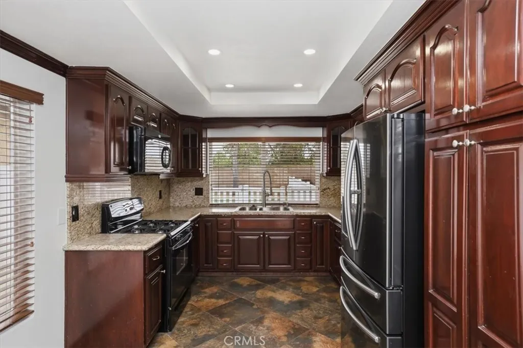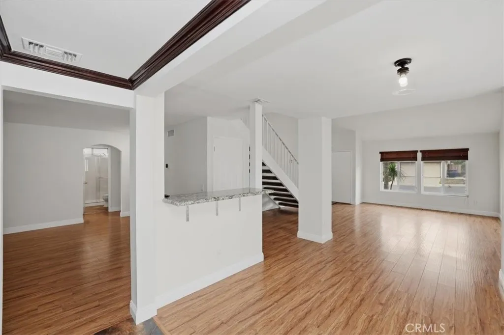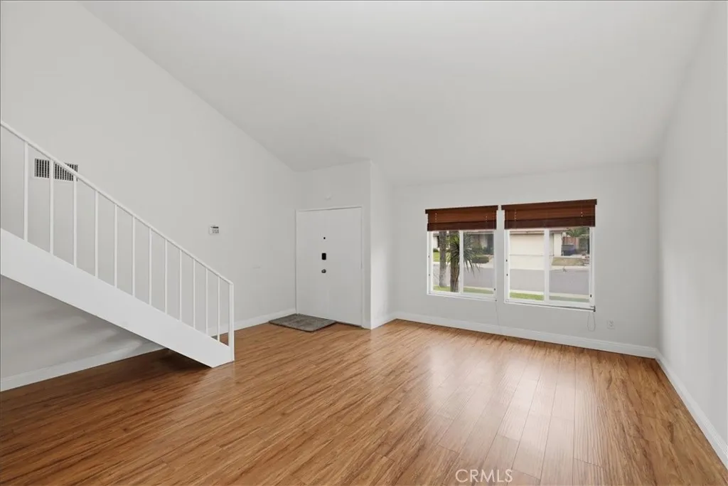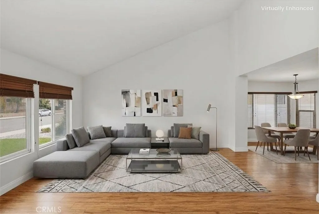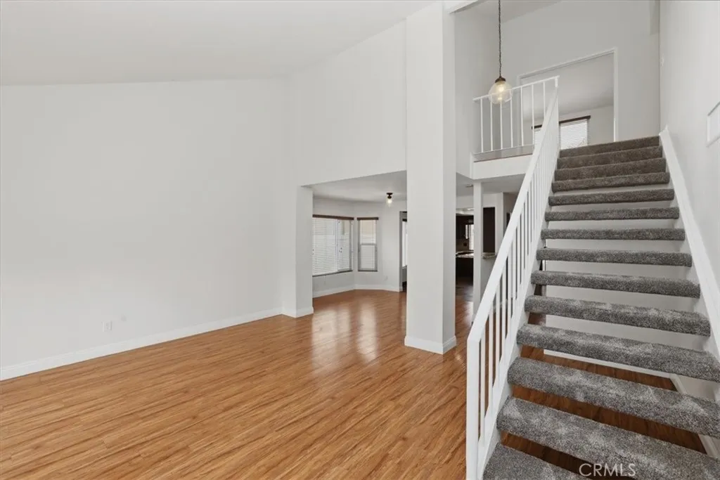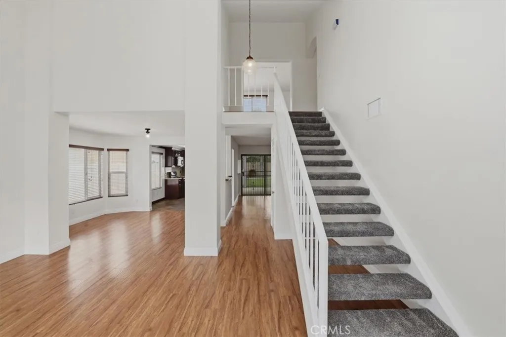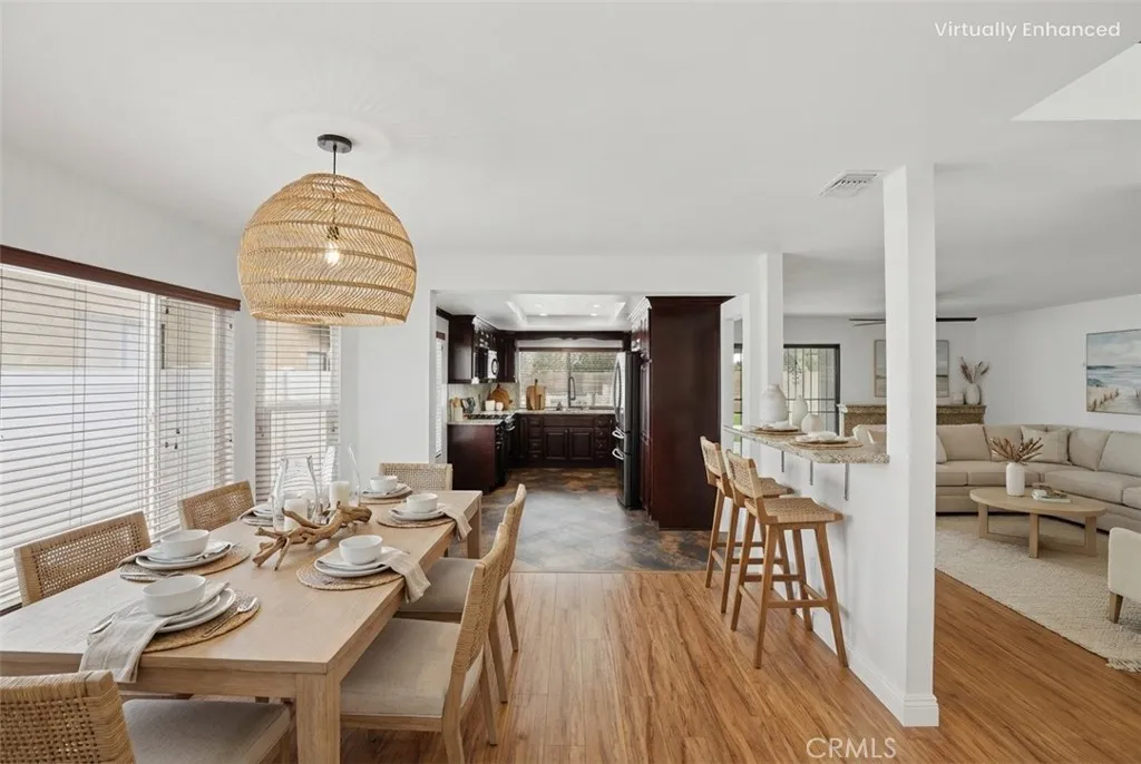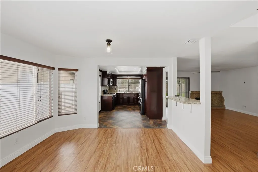Beautifully updated and thoughtfully designed, this spacious 4-bedroom, 3-bathroom home offers a versatile and functional floor plan in a highly desirable location. Featuring a rare downstairs bedroom and full bathroom, its ideal for guests, multigenerational living, or a private home office setup. Upon entry, youre welcomed by soaring vaulted ceilings and an abundance of natural light flowing through the formal living and dining areas, complemented by fresh interior paint and newer flooring throughout both the main level and upstairs. The layout seamlessly connects to the inviting family room, creating a comfortable space for everyday living and entertaining. The kitchen is both functional and stylish, featuring granite countertops, stainless steel appliances, rich cabinetry, ample storage, and generous counter space, all positioned to overlook the main living areas and backyard, making it perfect for both daily living and hosting. Upstairs, the primary suite offers a relaxing retreat with a walk-in closet and a beautifully updated bathroom complete with newer tile work, quartz countertops, upgraded fixtures, and modern finishes. Secondary bathrooms have also been tastefully updated with refreshed vanities, tile showers, and contemporary details, providing a cohesive feel throughout the home. Additional improvements include dual-pane windows throughout and an updated air conditioning system, enhancing comfort, efficiency, and year-round livability. Step outside to a spacious backyard designed for year-round enjoyment, featuring a custom covered patio with recessed lighting