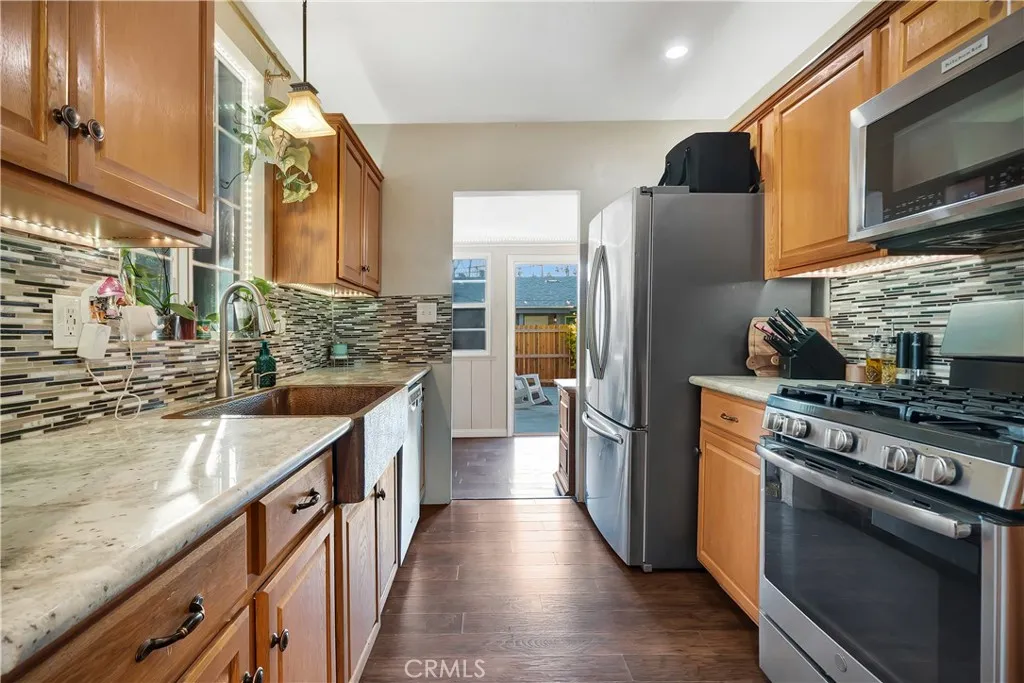 Exceptional opportunity to own a versatile property featuring two homes on one lot ideal for owner-users wanting tons of privacy, a family compound or investors seeking strong rental potential and long-term appreciation. The traditional aprox 752sqft front residence offers 2 bedrooms and 1 bathroom providing comfortable single level living space. The contemporary ADU built around 2018 has it's own address and is aprox 1,200 square feet with 3-bedrooms and 2-baths. Showcasing modern design and quality finishes throughout including quartz countertops, beautiful cabinetry, laminate flooring, tiled shower walls. The spacious layout also includes a private backyard area, separate gas and electric meters and laundry, adding convenience and flexibility. A detached two-car garage is currently divided and used as additional storage. Keep it as storage, convert it back to a garage or posibly built it out as a third unit. The lot is fenced with a power gate increasing the privacy and security. Whether you choose to live in one residence and rent the other, or lease both units to maximize income potential, this property offers a ton of options and the rare advantage of dual dwellings on one lot making it a smart addition to any real estate portfolio.