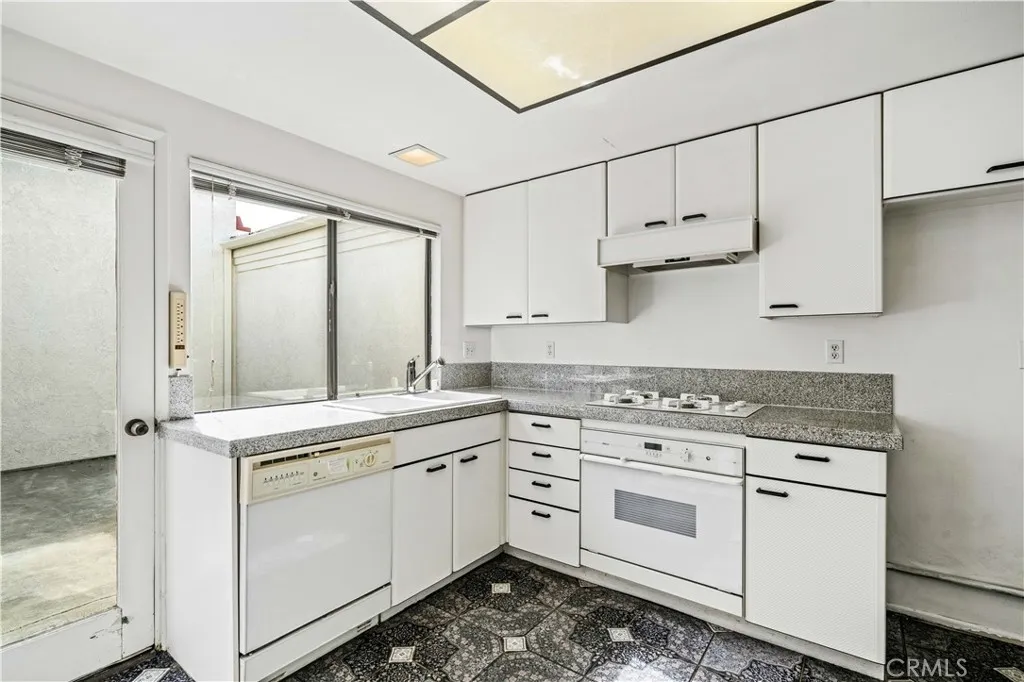 SINGLE-STORY GROUND-LEVEL TOWNHOUSE, NO ONE ABOVE OR BELOW, STEPS FROM COMMUNITY POOL AND SPA! Fixer Upper with 2 Bedrooms and 1.5 bathrooms. Enter through the front gate and block-walled patio into an open floor plan with cathedral ceilings in Living and Dining Rooms. In the back of the home is a spacious and private Primary Bedroom and ensuite bathroom, including vanity area and shower privacy door, with glass slider to an atrium open to the sky. The Kitchen, with doorway to the Dining Room, has windows and a door to the atrium, where you can relax in the open air, dine and barbeque. The front bedroom, which can be used as an office, with a powder room and closet has windows to the front and side letting in lots of natural light and views of trees and plants. Some homeowners of this same model have reconfigured the powder room to add a shower, but HOA approval and Irvine city permit would be required. A large detached 2-car garage with storage is right around the corner. Acclaimed Irvine School District, including University High. Next to San Joaquin Golf Course, Racquet Club of Irvine and Rancho Senior Center. Conveniently located near UCI, William Mason Park, John Wayne Airport, Newport Beach, Fashion Island and walking distance to shops and entertainment. Water, trash, and exterior maintenance included in HOA dues. A great opportunity to remodel this home the way you want!