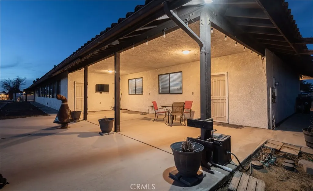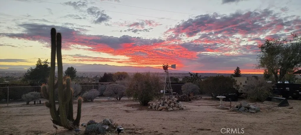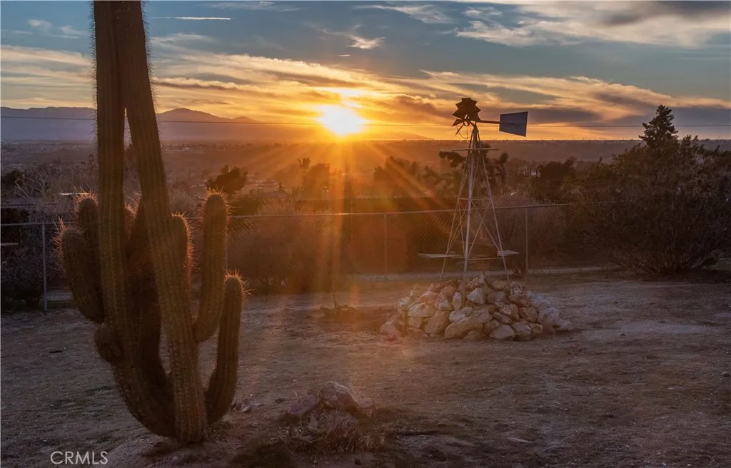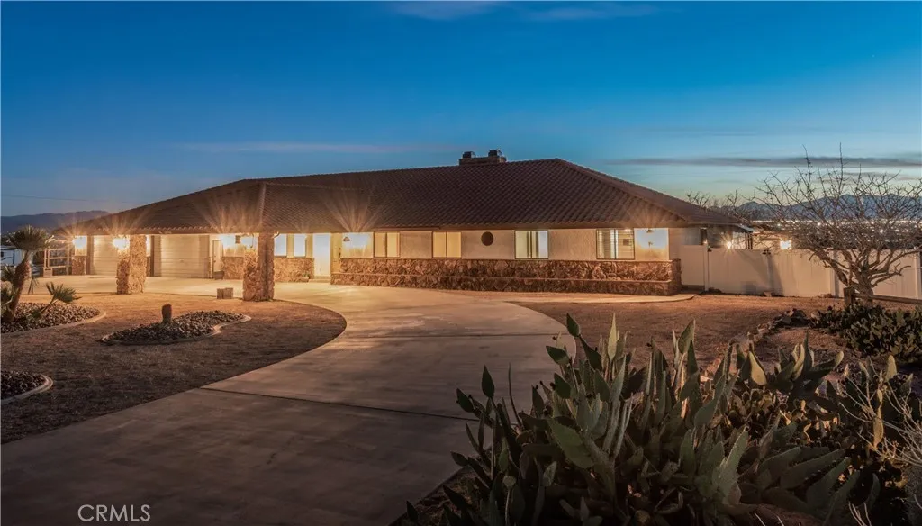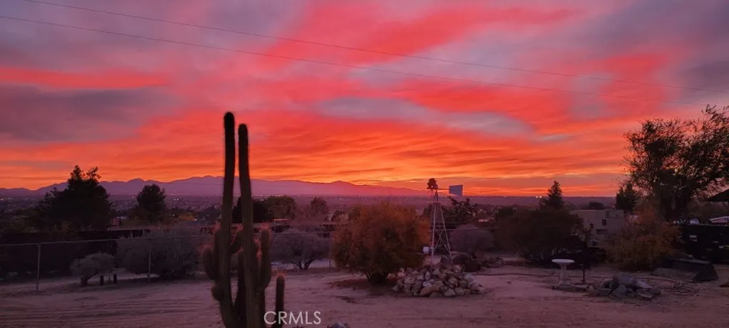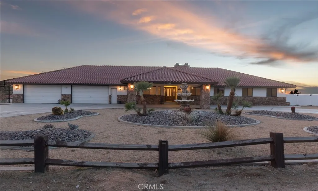 Wonderful 5 bedroom, VIEW home located in one of Apple Valley's most sought-after neighborhoods! An impressive porte-cochere and professionally designed drought-tolerant desert landscaping set the stage for lovely curb appeal. This home also comes with an extra tall, finished, 6 car garage (maybe more depending on the size of the cars). Upon entry you are greeted by a spacious foyer and a bright, oversized formal dining that could easily function as a formal living room or even an office! The expansive great room/living room two oversized sliding glass door (that lead to an incredible FLEX room) with a double-sided fireplace as its centerpiece. This space flows seamlessly into the open concept kitchen complete with large breakfast bar, tons of cabinets, custom lighting and a little office area as well - additionally, there is a "pantry room" separate of the kitchen...a chef's dream for sure! Four great sized bedrooms all with large windows letting in lots of natural light! Large primary suite has it's own walk in closet and large bath with step in shower and oversized vanity area! The primary bedroom also has direct access to the FLEX room! Let's talk about the FLEX room....this room runs the length of the back of the home....it has its own dedicated evap cooler and two hydrophonic heaters! You can access this amazing possibility room from the garage, living room and primary suite! AI generated photo attachments will show just some of this FLEX room possibilities! The Westerly views off the back of this home are absolutely stunning!! Currently there is 1 car garage/mancave