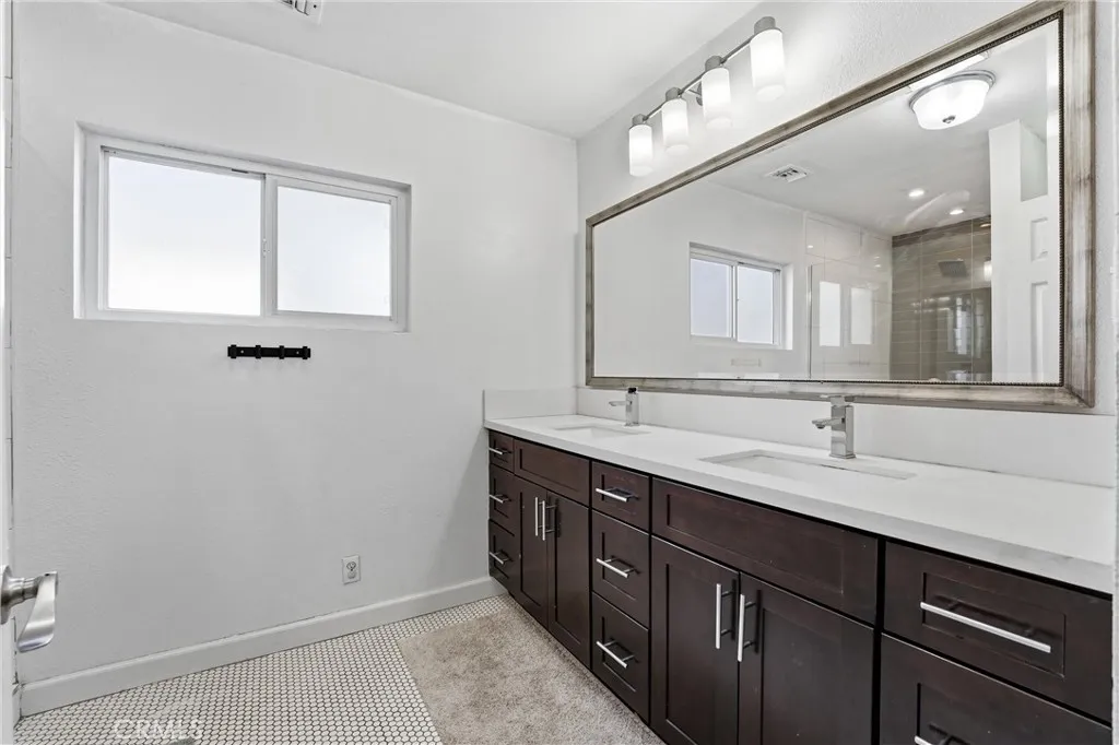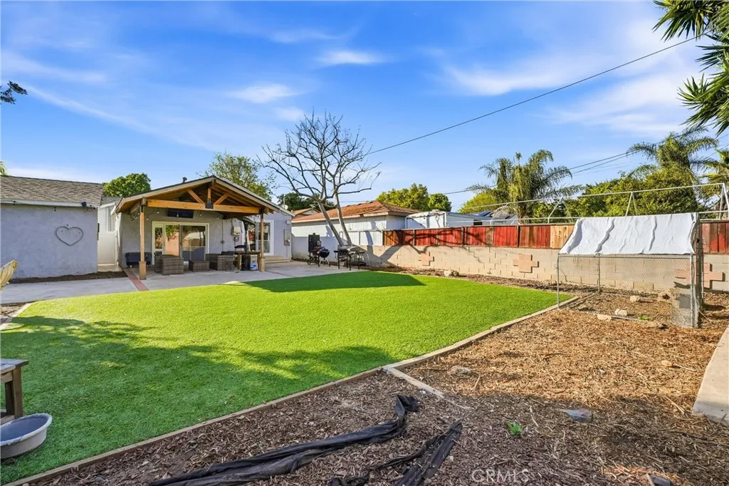 Welcome to this beautifully remodeled 4-bedroom, 3-bathroom home offering 2,040 square feet of living space on an expansive 8,336 square foot lot one of the largest in the neighborhood. Originally built in 1944, this residence blends timeless character with modern upgrades throughout. As you arrive, youll notice the extra-long driveway leading to a two-car garage and the generous front presence created by the oversized lot. The spacious backyard is perfect for entertaining or relaxing, complete with a covered patio ideal for outdoor dining and gatherings. Inside, high ceilings and an open-concept layout create an airy, inviting atmosphere. Wide-plank laminate flooring flows seamlessly throughout the home, enhancing the cohesive design. The living area is anchored by a stunning Carrara marble-tiled fireplace with a floating hardwood mantle a true statement piece. The bright and open kitchen is thoughtfully upgraded with soft-close cabinetry, quartz countertops, a Valentino marble backsplash, stainless steel appliances, and designer light fixtures, offering both style and functionality. The primary suite features a beautifully designed bathroom with a frameless glass dual shower and double vanity, creating a spa-like retreat. Additional upgrades include a newer HVAC system, newer windows, and solar panels for improved energy efficiency. This is a rare opportunity to own a turnkey home on an oversized lot in Long Beach.