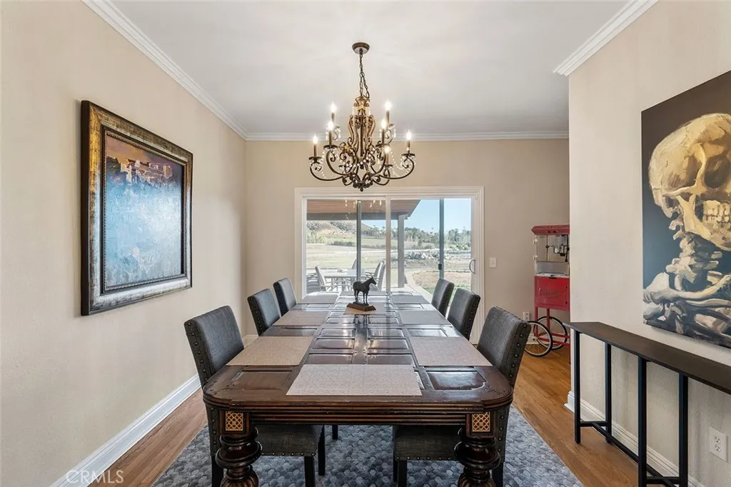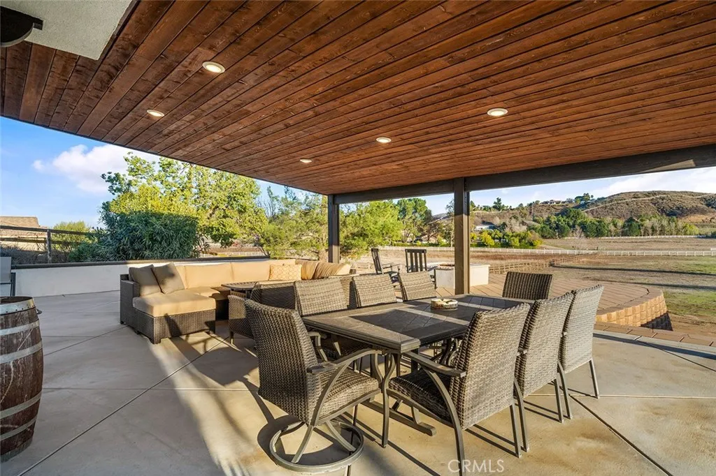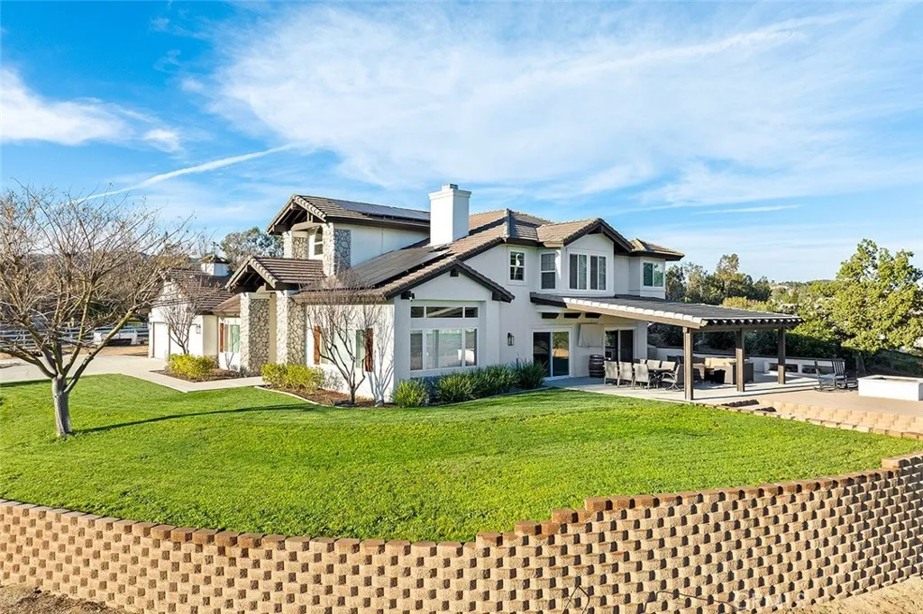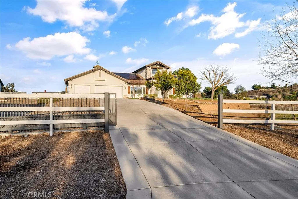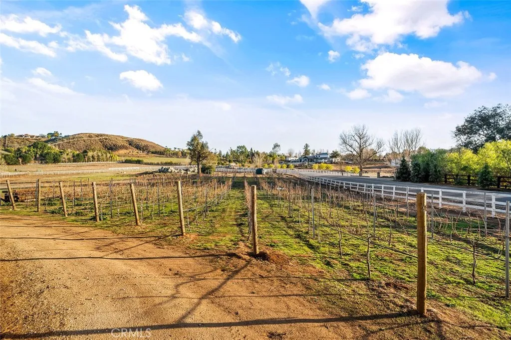 IN THE HEART OF LA CRESTATHIS SPACIOUS 4-BEDROOM HOME SITS ON 5 FLAT & USABLE ACRES WITH VINEYARD, POOL AND SEPARATE RV GARAGE! This fantastic fully fenced property is conveniently located at the corner of Avenida La Cresta & Calle de Companero near the entrance of La Cresta, has four privacy gates, new concrete driveways, a robust private water well system, and offers direct access to the miles of community recreational trails. This uniquely usable parcel includes a charming vineyard of 400+ Cabernet Sauvignon vines and ample additional FLAT land for whatever else you desirePerfect for future amenities, such as horse barn, arena, ADU, guesthouse, outbuildings. The modern farmhouse-style home is flooded with natural light and has 4 bedrooms (3 are downstairs), 3 bathrooms, large recreation room/office, formal living room with fireplace and vaulted ceilings, dedicated laundry room with direct access to the attached 3-car garage, formal dining room, chefs kitchen which opens to breakfast room and family room. From the dining and family rooms, walk out to a spacious covered outdoor living room with lighting, mounted TV, multiple seating areas, custom walls and built-in firepit, all overlooking your vineyard and pasture. Imagine catching a game in this picturesque setting! From the very private upstairs Primary Suite, enjoy beautiful views, an ensuite bathroom with jetted tub, separate shower and walk-in closet. Beyond the pool deck, find a detached multi-use RV GARAGE with its own gated entrance, creating an excellent immediate opportunity for workshop, gym, office This entire