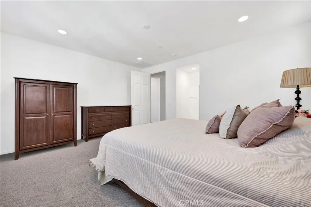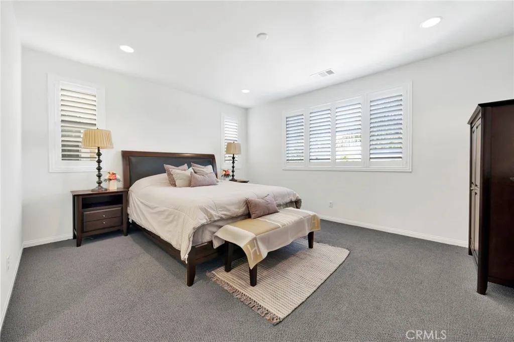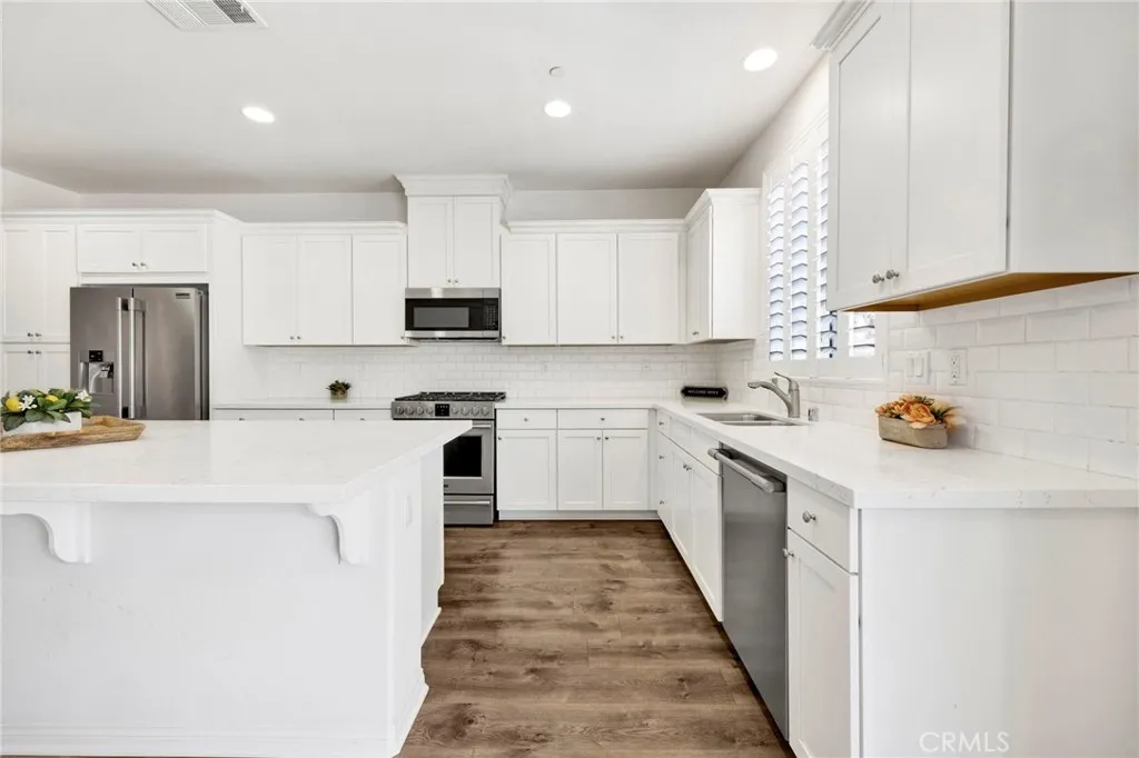 Do not miss a rare opportunity to own in this exclusive, gated West Hills community, built in 2017, where homes seldom come on the markettrue pride of ownership throughout, original owners spared no expenses on upgrades! Welcome to this beautifully upgraded modern smart home with a bright open-concept design, offering 4 bedrooms, 3.5 baths and a direct-access attic space, offering flexibility as a craft/hobby room, or ample storage. The main floor features a full bedroom with en-suite bathroom, ideal for guests or multigenerational living, a powder room, a bright and airy living room with a shiplap accent wall, and the gourmet kitchen, the heart of the home, showcasing an expansive quartz center island and countertops, included modern stainless steel appliances, with plenty of cabinet storage and counter spaces creating a functional and seamless flow into the living, dining, and outdoor patio areasperfect for entertaining. The second floor features a master suite, loft, two spacious bedrooms, and utility room with sink and included washer and dryer. Throughout the home, there are custom plantation shutters, recessed lighting, paneled closet doors, walk-in closets, modern laminate flooring, and upgraded carpeting for additional comfort. Step outside to a serene, partially covered patio area, featuring a feng shui water element, wall-to-wall planter areas with automatic sprinkler hookups, and green turf, creating the perfect ambiance for relaxation or entertainment. The HOA maintains a community park, BBQ and picnic area, adding to the neighborhoods appeal. Smart-home, securi