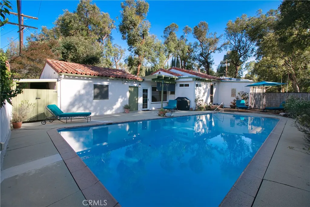 Woodland Hills Spanish-Style Retreat, South of Ventura Boulevard! Welcome to this charming Santa Barbara-inspired residence ideally situated on a desirable corner lot south of Ventura Boulevard. Built in 1949 and thoughtfully maintained, this single-story home offers approximately 2,076 square feet of living space, comfortably situated on a 8007 square foot lot, featuring three bedrooms and two bathrooms, blending timeless architectural character with everyday comfort. Arched wrought-iron gates welcome you into the private outdoors, evoking classic Spanish hacienda design and setting a warm, romantic tone. Classic white stucco, a red tile roof, and graceful arched details which create inviting curb appeal, while mature trees provide shade, privacy, and a sense of established charm. Inside, the home showcases warm hardwood flooring, abundant natural light, and a functional layout designed for both relaxed living and entertaining. The kitchen offers generous cabinetry, upgraded stainless appliances, and ample workspace, flowing seamlessly into the homes living areas. Each bedroom is well-proportioned. The backyard captures the essence of California indoor-outdoor living with a sparkling pool, patio areas, and a private courtyard atmosphere perfect for entertaining, lounging, or enjoying warm Woodland Hills evenings. Located moments from dining destinations, cafs, shopping in The Village & Westfield Topanga Mall, Calabasas Commons, 101 Freeway, Parks, Upscale neighborhood nightlife and commuter routes, minutes from Historical Topanga Canyon and our beautiful coastline & beache