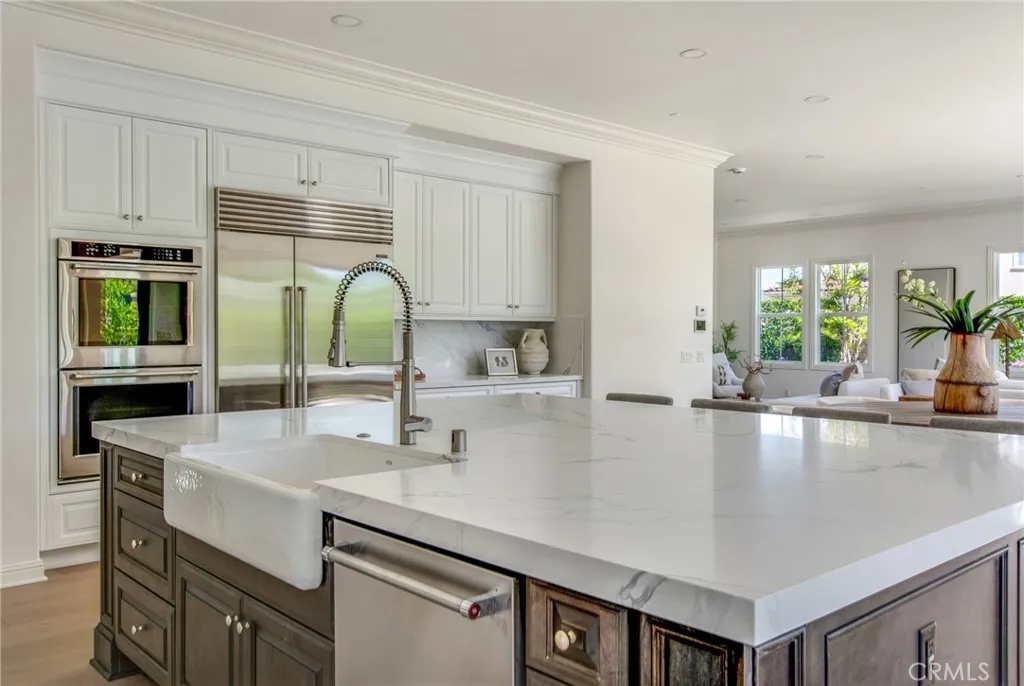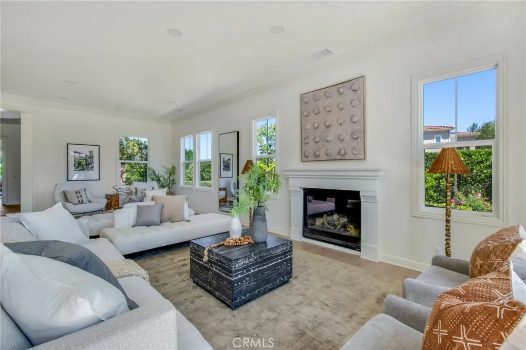 Discover the ultimate single-family home situated on a private corner lot in the Summit neighborhood, within the highly sought-after community of Baker Ranch. The Grand entry leads to an expansive open floor-plan. This model perfect, move in ready home, has undergone a recent refresh with new paint, new hardwood flooring on the main level, new quartz countertops, new carpet on the upper level, new interior and exterior LED lighting throughout and an alarm system with exterior cameras and central interface. The residence is designed for effortless living and entertaining, with spacious rooms that exude a sense of comfort. The great room is adorned with expansive sliding glass doors that seamlessly connect indoor and outdoor spaces, leading to a meticulously landscaped private yard. This exceptional home encompasses five bedrooms and six bathrooms (of which four bedrooms are en-suite), including one suite on the main level for added convenience. The kitchen showcases a built-in refrigerator, stainless steel appliances, and quartz countertop, plus a large center island with seating. Ascent to the upper level, where an impressive loft area awaits, providing an ideal space for children to unwind. The Owners suite is a sanctuary of luxury, with a spa-like bath featuring a large soaking tub, separate shower, dual vanities, and large walk-in closet - and a sitting area with sliding glass doors opening to a spacious terrace overlooking the backyard below. This home epitomizes refined living with a perfect blend of style and functionality, inviting you to experience a lifestyle of un
