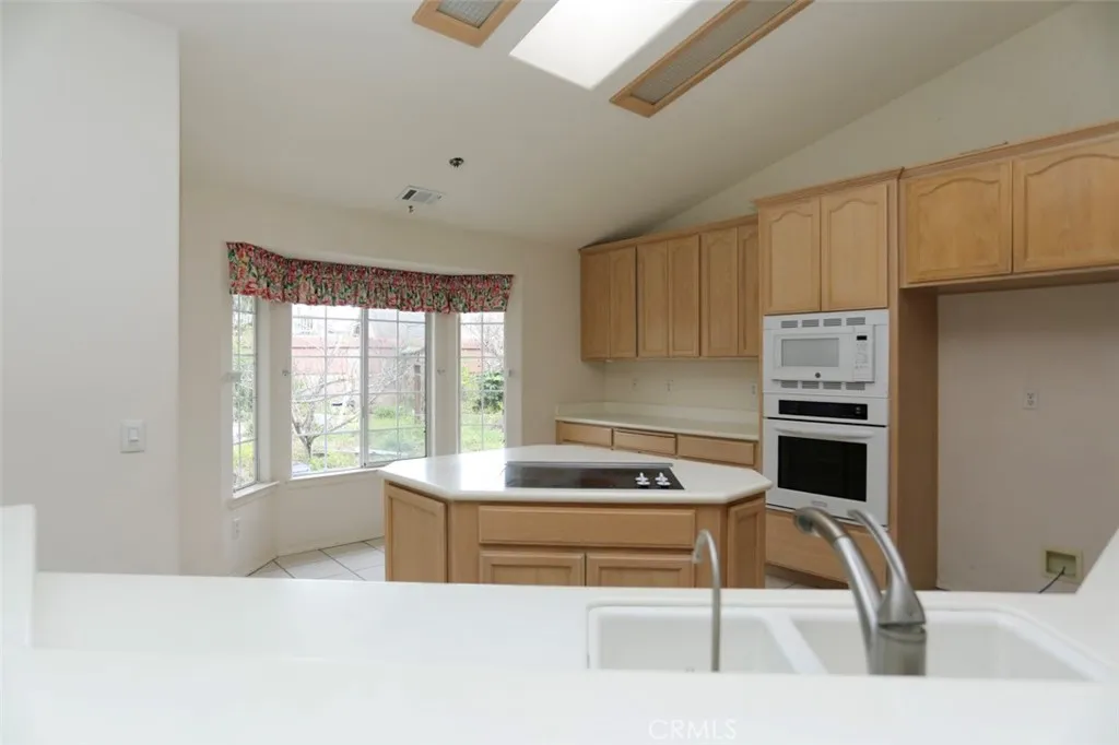Unique opportunity to own a single-level home in the desirable Sorrento Del Sol neighborhood. This Mediterranean-style residence was built by S&S Homes and offers timeless character combined with comfortable everyday living. Upon entering, youll immediately notice the vaulted ceilings and spacious living room featuring a cozy fireplace. To the left of the entry is a versatile bedroom with a front-facing windowideal for a home office, den, or studio to suit your needs. From the living room, a sliding door opens to a beautiful sunroom with stone flooring, creating the perfect space for relaxing or entertaining year-round. The living room flows seamlessly into the dining area and kitchen, offering a functional and open layout. The kitchen features a breakfast bar, a sunny breakfast nook, an island with an electric cooktop and additional storage, and ample cabinet and counter space for the home chef. Down the hallway, the primary suite provides a private retreat with a sliding door to the backyard and an en-suite bath complete with a spa-like soaking tub, separate shower, and dual vanities. Also located off the hall are an additional bedroom, a second full bathroom, a conveniently placed laundry area, and two more bedroomsoffering flexibility for family, guests, or workspace needs. The two-car garage includes built-in storage along both walls for added organization. Situated on an approximately 7,783-square-foot lot, the backyard features mature fruit trees and established landscaping. Conveniently located near schools, local parks, places of worship, shopping, dining, and the