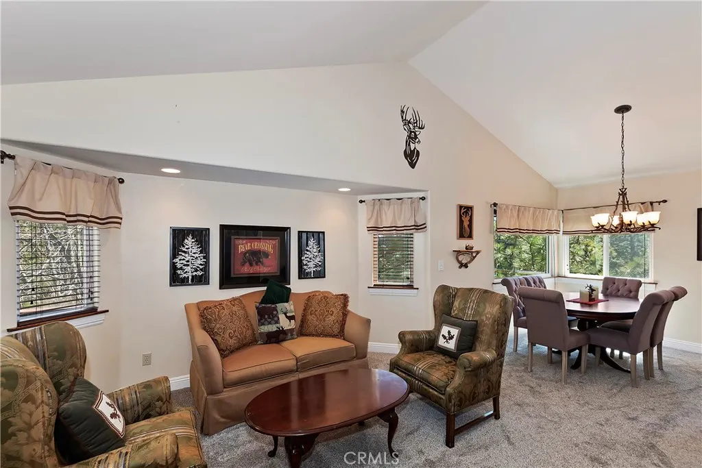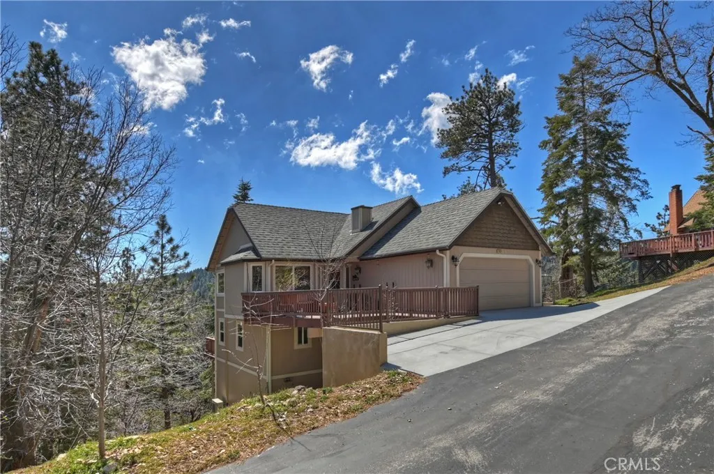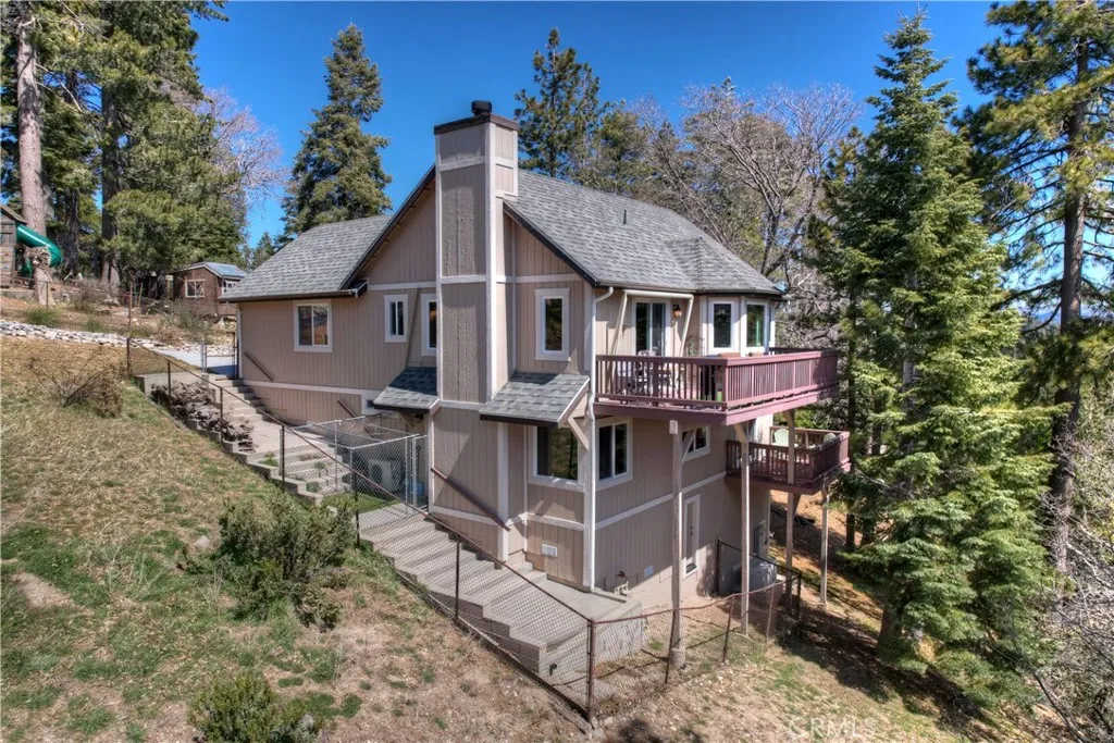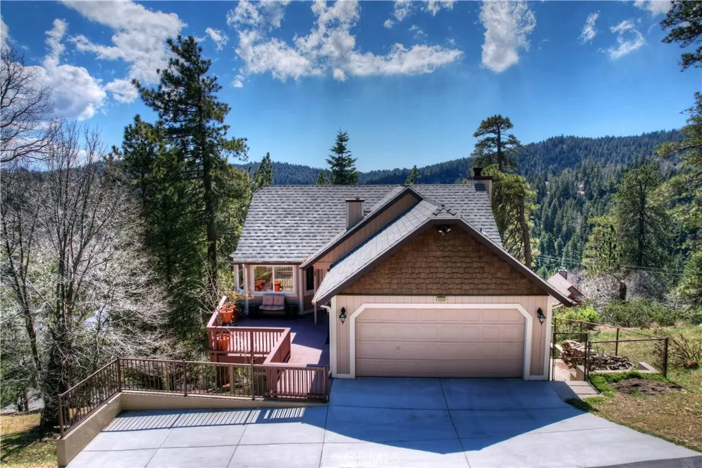 Experience the magic of Lake Arrowhead living with sweeping, long-distance panoramic forest views and exceptional privacy on a rare 17,000+ sq ft double lot. This beautifully upgraded mountain retreat, offered mostly furnished, delivers space, serenity, over $100,000 in recent enhancements and, of course, FULL LAKE RIGHTS. Step inside to warm, inviting living spaces, including a cozy family room with a wood-burning fireplace the perfect mountain ambiance. Newer luxury carpeting flows throughout both levels, complementing the updated kitchen featuring granite countertops and refreshed cabinetry. Designed for comfort and resilience, the home now includes a 14KW Generac whole-house standby generator with internet monitoring, 1-ton Daikin air conditioning serving both levels, dual-pane windows, three low-maintenance TREX decks and, a newer SunSetter awning that extends your outdoor enjoyment. Outdoor living truly shines here. The main deck flows from the living room, while a second deck off the primary suite captures additional breathtaking panoramic views and creates a peaceful retreat. The third trex deck, located at the front of the house, offers an expansive gathering area, as well. The newer concrete driveway provides level, direct access from the 2-car garage plus expanded parking for guests or boat storage. And, the newer retaining wall with safety railing enhances both function and curb appeal. Pet lovers will appreciate the fully enclosed, top-to-bottom fenced area directly off the laundry room a secure and protected outdoor space. Additional fenced areas offer expan