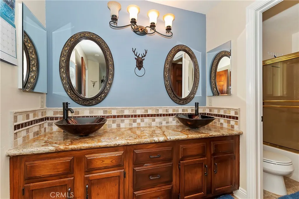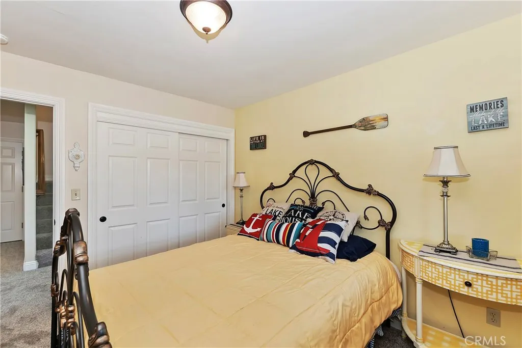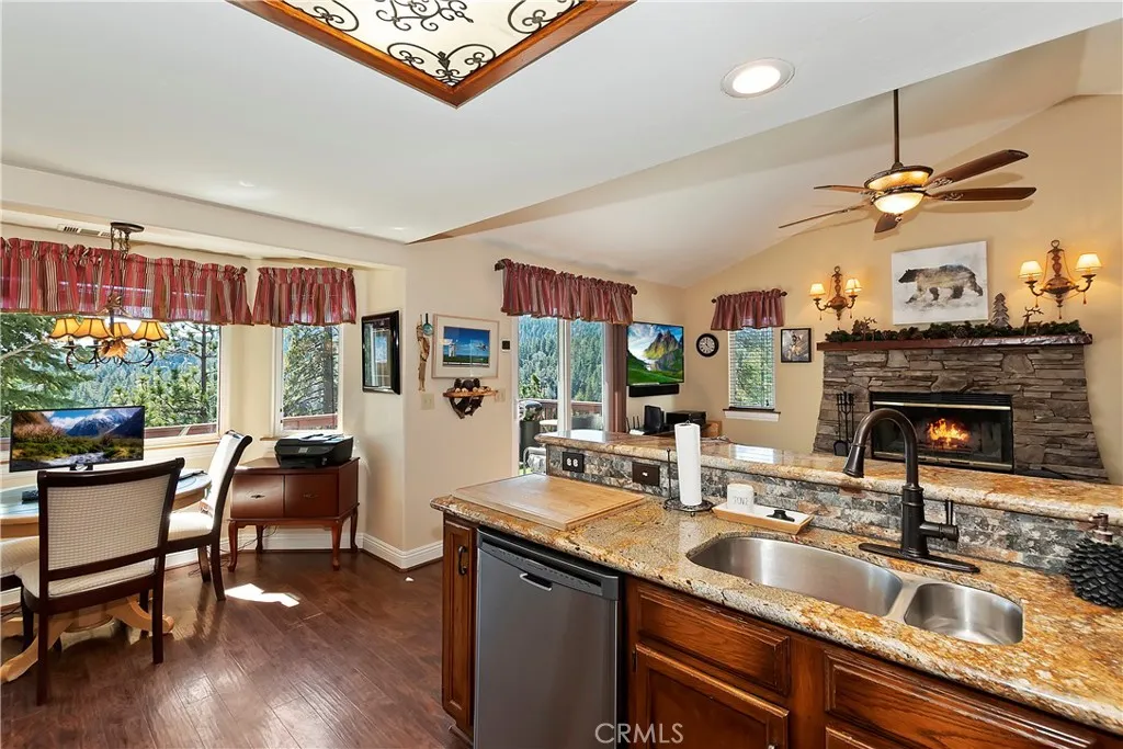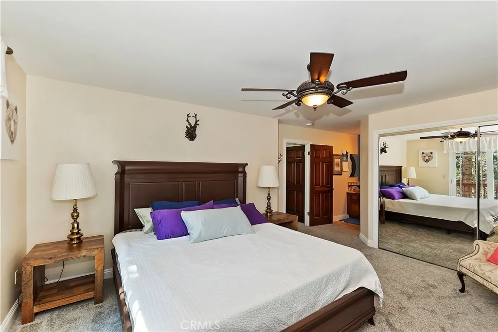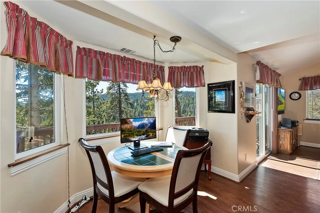 Experience the magic of Lake Arrowhead living with sweeping, long-distance panoramic forest views and exceptional privacy on a rare 17,000+ sq ft double lot. This beautifully upgraded mountain retreat, offered mostly furnished, delivers space, serenity, over $100,000 in recent enhancements and, of course, FULL LAKE RIGHTS. Step inside to warm, inviting living spaces, including a cozy family room with a wood-burning fireplace the perfect mountain ambiance. Newer luxury carpeting flows throughout both levels, complementing the updated kitchen featuring granite countertops and refreshed cabinetry. Designed for comfort and resilience, the home now includes a 14KW Generac whole-house standby generator with internet monitoring, 1-ton Daikin air conditioning serving both levels, dual-pane windows, three low-maintenance TREX decks and, a newer SunSetter awning that extends your outdoor enjoyment. Outdoor living truly shines here. The main deck flows from the living room, while a second deck off the primary suite captures additional breathtaking panoramic views and creates a peaceful retreat. The third trex deck, located at the front of the house, offers an expansive gathering area, as well. The newer concrete driveway provides level, direct access from the 2-car garage plus expanded parking for guests or boat storage. And, the newer retaining wall with safety railing enhances both function and curb appeal. Pet lovers will appreciate the fully enclosed, top-to-bottom fenced area directly off the laundry room a secure and protected outdoor space. Additional fenced areas offer expan
