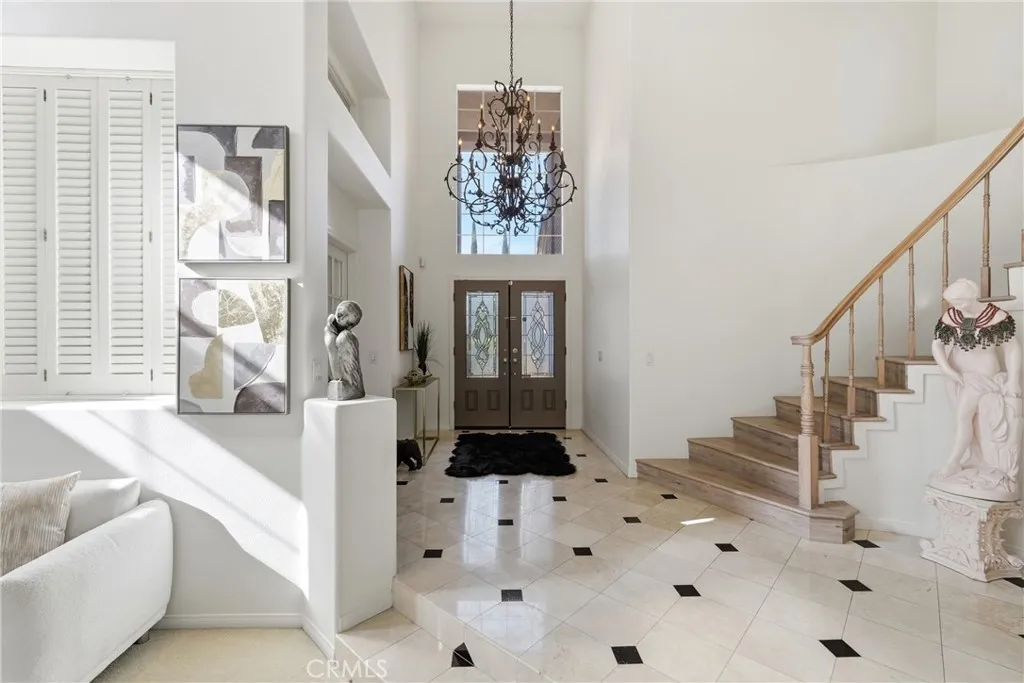 Welcome to one of the most desirable locations in Moulton Ranch, featuring a beautiful rose garden and exceptional curb appeal. This 4,000 sq. ft. custom home sits on a 7,000 sq. ft. lot and offers an impressive open-flow layout with 5 bedrooms, an office, and a large loft. The residence includes two primary suites, one conveniently located on the main level, along with a dedicated office. Enjoy vaulted ceilings, a marble-entry foyer, an upstairs bonus room, and a formal dining room that opens to a spacious family room with a full bar. The kitchen features hardwood cabinetry and marble countertops, overlooking peaceful natural views. Additional highlights include a luxurious living room with a fireplace, wood floors, custom crown molding, and a primary suite retreat with two walk-in closets and a Jacuzzi tub. A laundry room and a three-car garage complete this exceptional home.