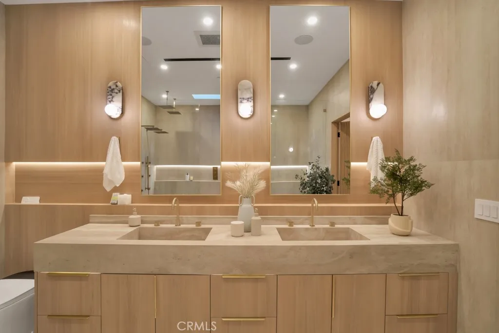 **Luxury Smart-Home Masterpiece Prime Toluca Lake Area** Experience resort-style modern living in this fully integrated smart home located in the highly desirable Toluca Lake neighborhood, just minutes from Ventura Blvd, Studio City, major studios, Universal Studios, parks, dining, and entertainment. This high-end residence showcases custom finishes throughout, seamless indoor/outdoor design, and top-tier technology. Featuring multiple private master suites, each with its own spa-like en-suite bath and dedicated closet, plus 10-foot ceilings in multiple areas for a bright, open feel. The chefs kitchen offers custom cabinetry, panel-ready hidden appliances, and premium millwork. A secondary full-size utility kitchen provides added convenience for entertaining or multi-generational living. Spa-inspired bathrooms include curb-less showers, rain heads, body jets, LED ambient lighting, floating benches, and fully integrated custom stone sinks no standard sinks anywhere in the home. Smart-home features include iPad-controlled lighting, climate, audio, and security; multi-zone indoor/outdoor speakers; full-property Wi-Fi coverage; DoorBird smart intercom; Ring alarm system and cameras covering all sides. Outdoor living rivals a private resort with 8-foot bi-fold glass walls (18 & 14 spans) creating seamless indoor/outdoor flow, custom stone deck and hardscape with ambient lighting, floating LED-lit entry steps, remote-controlled gated entry, and a luxury pool with water features and deck shooters. The expansive custom BBQ area includes engraved LED lighting, built-in electrical,