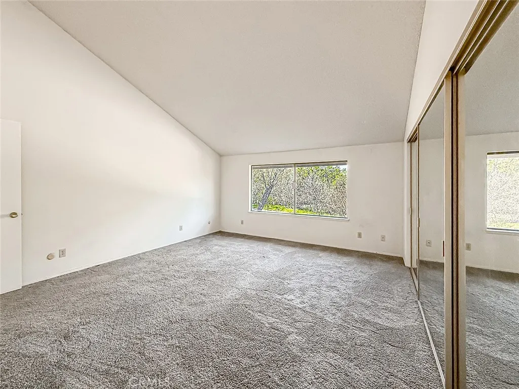 Oak Park Country Vista 4 bedrooms Primary suite on main level - Located in the Country Vista community of Oak Park, this detached townhome is surrounded by mature trees and rolling hills, offering wooded views from the upstairs balcony and a spacious outdoor patio. Positioned to provide separation from neighboring units, the home offers the feel of a single-family residence with added privacy. The flexible floor plan includes 4 bedrooms, with the primary suite located on the main level for convenient access to the main living areas. Interior features include new carpet throughout, while major system updates include a recent HVAC system and ducting, newer roof, and a new garage lift system. The home presents an opportunity for cosmetic updates, allowing buyers to customize finishes and design to their preference. Additional features include a two-car detached garage and multiple outdoor spaces for seating and relaxation.