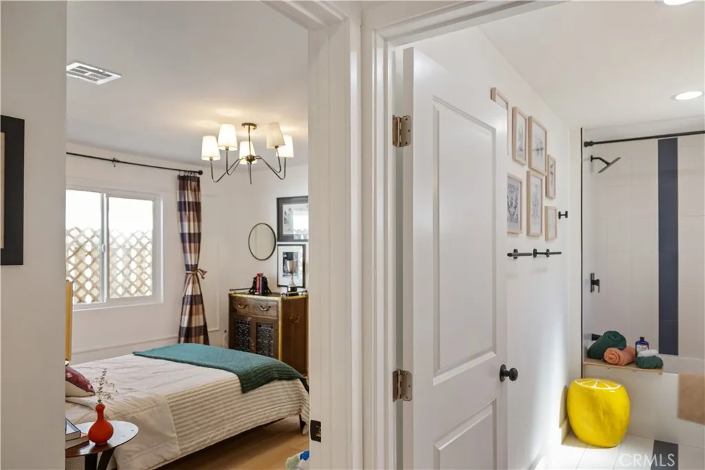 Reimagined North Hollywood design home with rare built in income potential. This 3 bedroom, 2.5 bathroom residence blends curated interiors, flexible living spaces, and proven short-term rental performance just minutes from Burbank Airport and Universal Studios. Spanning approximately 1,509 sq ft, the home lives beautifully as a primary residence while offering hospitality-ready flexibility in one of LAs most convenient locations. Natural light fills the open living and kitchen spaces. An eclectic fireplace anchors the living area, while the custom chefs kitchen with butcher block island balances function and style. Curated finishes create a relaxed, editorial feel. Double-pane windows with reflective film support comfort and energy efficiency year-round. The layout is intuitive and adaptable. The primary style bedroom brings vintage-inspired warmth, while the main bath features a double vanity and deep soaking tub. A second bedroom adds flexibility with its own powder room and vanity nook. The standout third bedroom spans over 400 sq ft with soaring ceilings, private entrance, and an ensuite bath finished with handmade Italian tile. Complete with a custom Murphy bed, this space easily shifts between guest suite, studio, office, or creative retreat. Currently designed as a sensory integration room, it has become a memorable feature for guests and families. A private entrance and continental kitchen allow the studio to function as a self-contained space. Outdoor areas embrace easy California living. The front yard offers mature ficus screening, native landscaping, and a cust