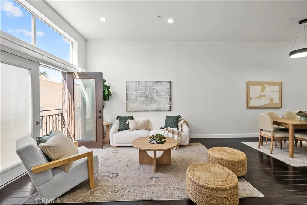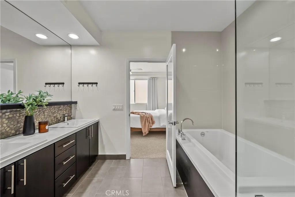 Discover this stunning two-story Penthouse with 2-bedrooms, 2.5-baths in the highly sought-after Studio Villas West, a mid-century-inspired building in Studio City. Located on the top floor, this unit boasts an open, sunlit living and dining area with recessed ceilings, dark hardwood floors, a gas fireplace, and french doors. The chefs kitchen features stainless steel appliances, a Bertazzoni range, quartz countertops, and ample storage. The primary suite impresses with a luxurious en-suite bath complete with a dual vanity, soaking tub and separate shower. The unit also features an additional bedroom with its own en-suite bath, a hall bath, and in-unit stacking front-loading laundry. Additional highlights include recessed lighting throughout, two parking spaces, a fitness center, courtyard with fountains, controlled access and common area security. Studio Villas West, built in 2009, is steps from CBS Radford Studios, the Studio City Farmers Market, and the vibrant shops and restaurants on Ventura Blvd. Its prime location offers easy access to Carpenter Community Charter School, parks, trails, and local amenities