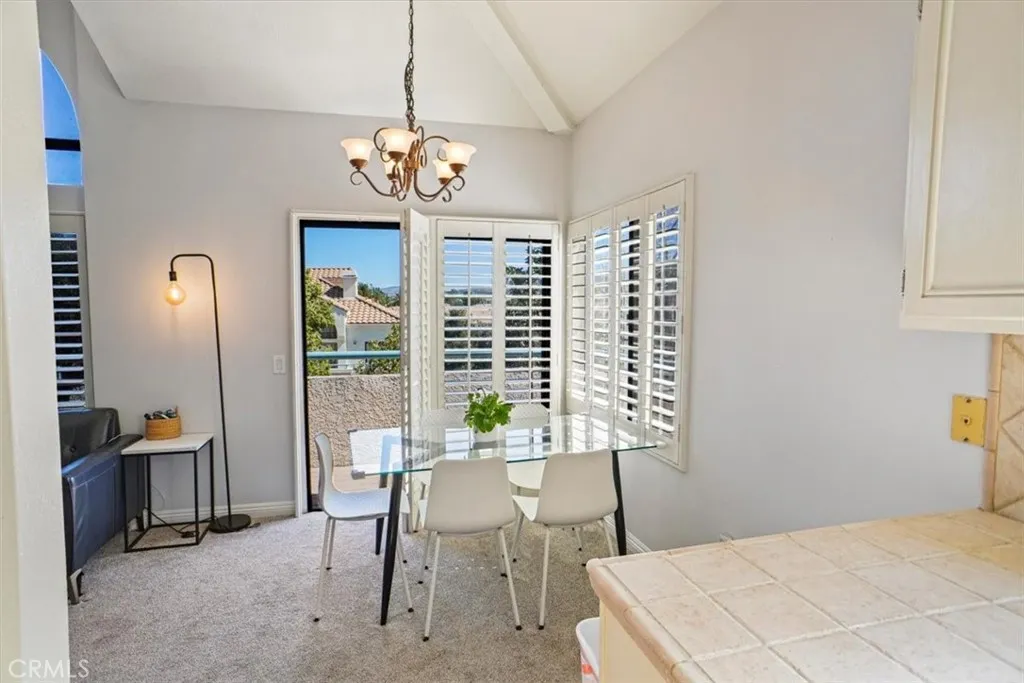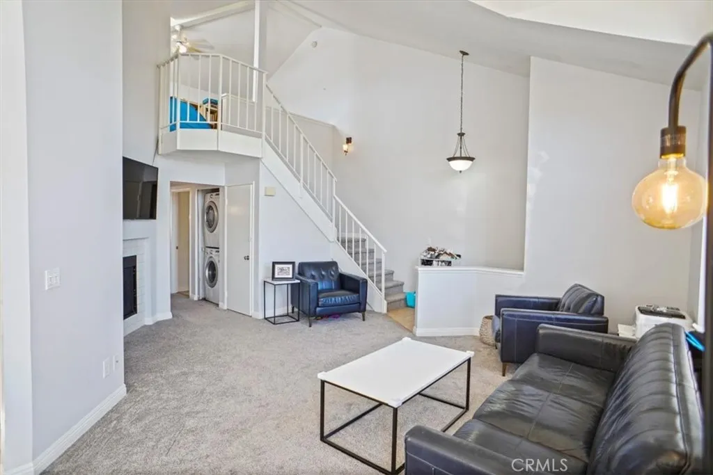 Top-floor end unit with no neighbors above and an open layout designed for flexibility and natural light. This 2-bedroom plus loft floor plan offers 1,155 sq ft with vaulted ceilings, a fireplace, and a private balcony with mountain and pool views. The loft provides additional space for a home office, creative use, or potential third bedroom setup. Additional features include in-unit laundry, central HVAC, newer carpeting, and a 2-car tandem garage with extra storage. Located in a well-positioned Canyon Country community with convenient access to the 14