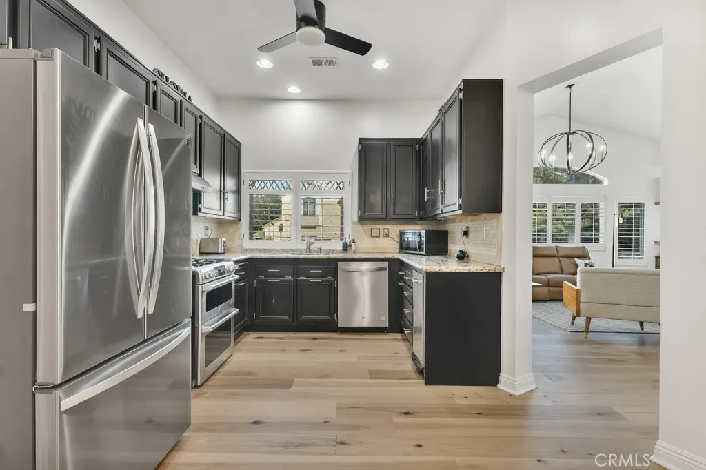 Welcome home to the stunning and luxurious gated community of Cantrice Court in Wood Ranch. This beautifully maintained single-story townhouse reflects true pride of ownership and has been thoughtfully upgraded throughout. Enjoy brand-new vinyl flooring and an open, light-filled living room featuring built-in cabinetry and an abundance of windows. The formal dining area offers generous space for entertaining and showcases custom cabinetry for added style and functionality. The dream kitchen is appointed with granite countertops, stainless steel appliances, and ample cabinet space--perfect for everyday living and hosting alike. The spacious primary suite features high ceilings, a walk-in closet, and a private en-suite bath complete with a garden soaking tub and separate shower. A large guest bedroom is conveniently located off the hallway. Additional highlights include a two-car attached garage, guest parking directly in front of the home, and a prime location across from the community pool--ideal for relaxing on warm days. Offered at $649,000--priced to move.