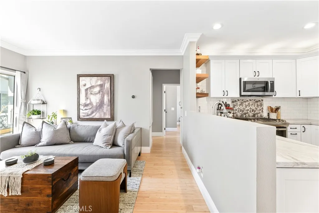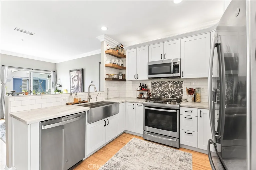 Experience refined living in this turnkey, thoughtfully upgraded carriage-style home. The kitchen showcases updated designer cabinetry, extended counter space, pull-out storage, stainless steel appliances, and a farmhouse sink with Reverse Osmosis filtration. Fresh paint, refinished bamboo floors with brand new bedroom flooring, and all-new interior doors elevate every room. Both bathrooms shine with updates, including a new primary vanity, fixtures, and shower door. Modern essentials include 2020 HVAC, 2025 water heater, smart lock, Nest thermostat, elevated custom closets, recessed lighting, media wiring, and upgraded ceiling fans offering effortless comfort. The garage provides added value with built-out overhead cabinets and a dedicated laundry table. Less than 7 miles to Laguna Beach, proximity to highly ranked schools, restaurants, grocery stores, and entertainment. Your dream is an offer away from becoming your reality.