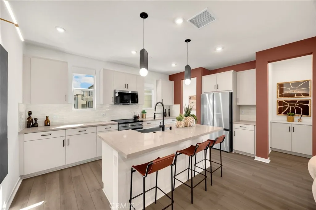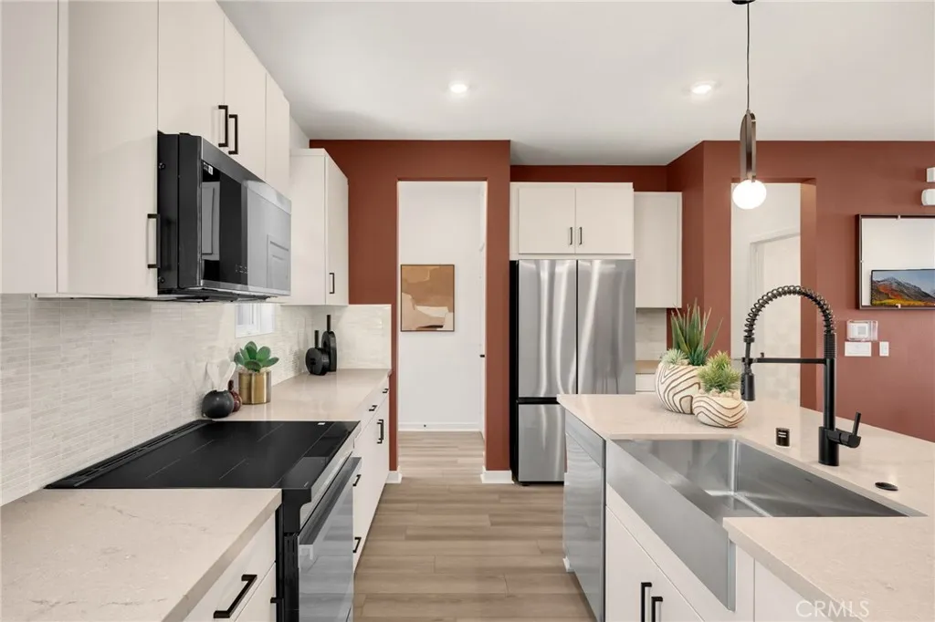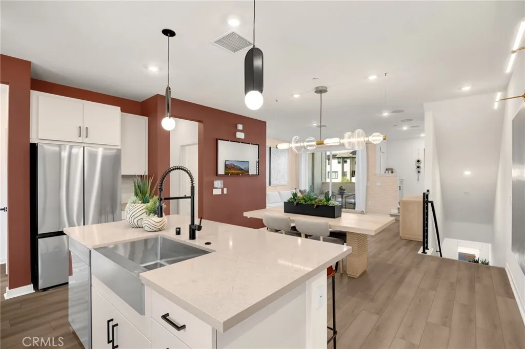 Rare opportunity to own a fully upgraded, professionally designed model home offered completely furnished with upscale furniture and custom dcor. Located in an intimate enclave of just 44 homes in Anaheim bordering Buena Park, this stunning three-story townhome blends modern design, smart functionality, and low-maintenance living. Thoughtfully designed for todays lifestyle, the versatile floor plan features 3 bedrooms and 3.5 bathrooms, including a private downstairs bedroom with en-suite bathideal for guests, multigenerational living, or a home office. The second level showcases an expansive open-concept layout with seamless flow between the kitchen, dining, and living areas, creating the perfect space for entertaining or relaxing. The designer kitchen offers abundant storage and opens directly to the main living space for convenient everyday living. Upstairs, two spacious bedrooms each feature their own bathrooms, providing comfort and privacy. Additional highlights include ample storage throughout, energy-efficient construction, and a 2-car attached garage. Enjoy a true lock-and-leave lifestyle in a community designed for convenience and connection. Residents have access to an inviting open green space, BBQ area, fire pit, and ping pong tableperfect for gathering with friends or unwinding at the end of the day. Situated adjacent to an exciting new development revitalizing the area with state-of-the-art entertainment, shops, and retail, the location offers exceptional accessibility. Close proximity to the 91 and 5 freeways allows for easy commuting throughout Orange Count