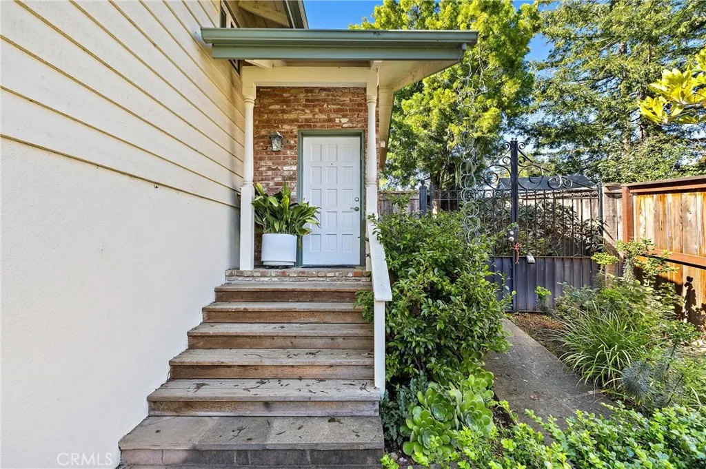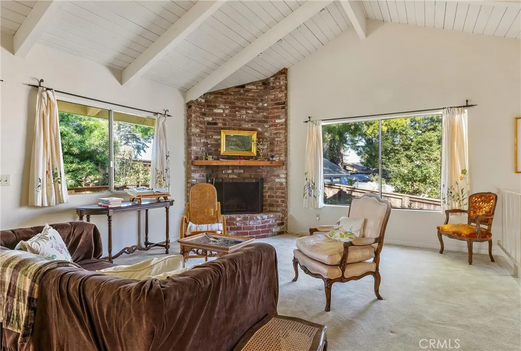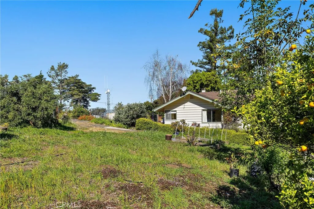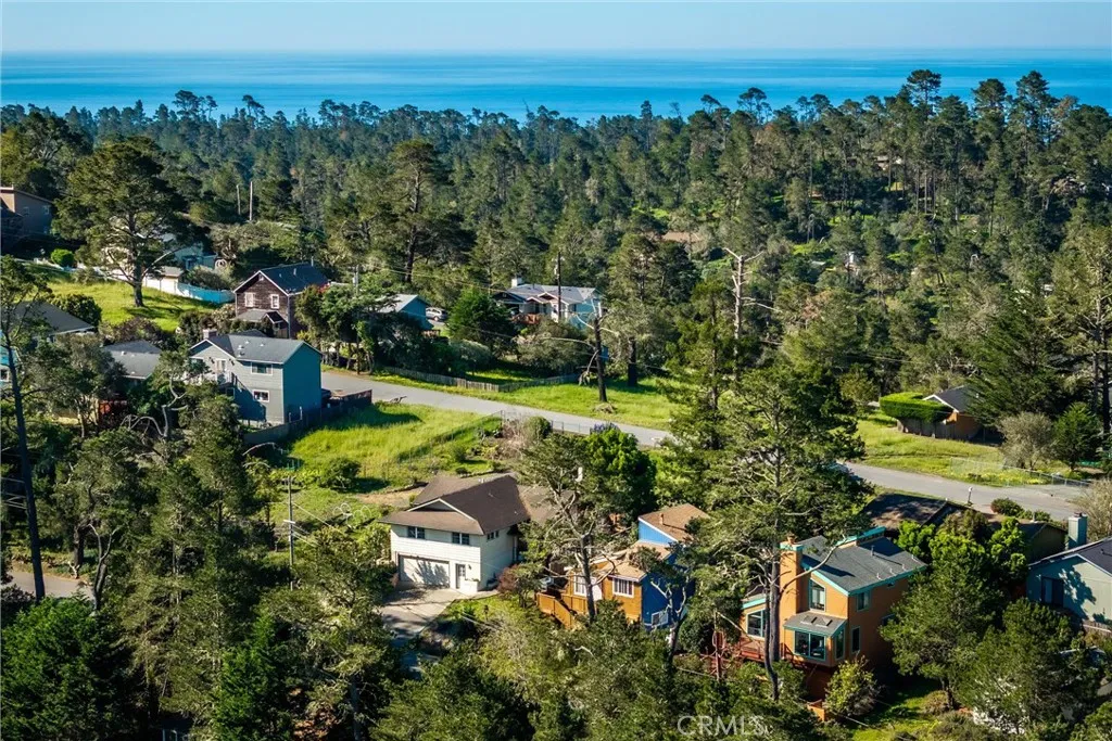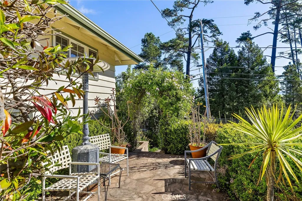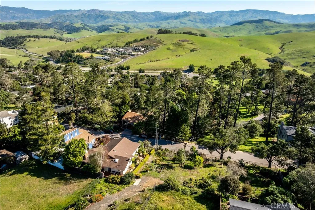 An opportunity knocks and you'll see why this 2 bedroom home hasn't been on the market for 31 years. Eloquently charming, with open beamed ceilings in the petite grand room, you'll enjoy sitting with family and friends while the glowing ambiance of the brick fireplace warms heart and hearth. But the part you'll keep pinching yourself over is the location. Location, location, location. You're on "Top of the World," a neighborhood known as Cambria's sunbelt, looking at the majestic Santa Lucia Coastal Range on your fully-fenced 16,800 sf of workable land - a wonderous lot of land comprised of 3 lots, not neglected to nature, but cultivated for growth, seasonal enjoyment and an intentional sanctuary all for you to treasure and continue to steward. The song of birds whistling or soaring by on the vents will be daily notes upon your memory. You're on Top of the World. Convenient street-to-street lot means upper-level access to either park for only a few stairs to entry, or extra RV/boat storage space - or somewhere to enjoy a firepit and a peek-a-boo ocean view. You'll want to sit awhile on the hardscape patio and take in the views with ice tea in hand. Inside, the home blends comfort and character with open-beamed ceilings, a cozy brick fireplace, a naturally lit kitchen with plenty of space to equip to your vision, and a primary bedroom with ensuite bathroom. Additional features include a guest room with a Murphy bed which pairs as an office or bonus flexible space. A two-car garage with workshop provides convenience, storage, soft water, newer furnace and water heater. Whethe