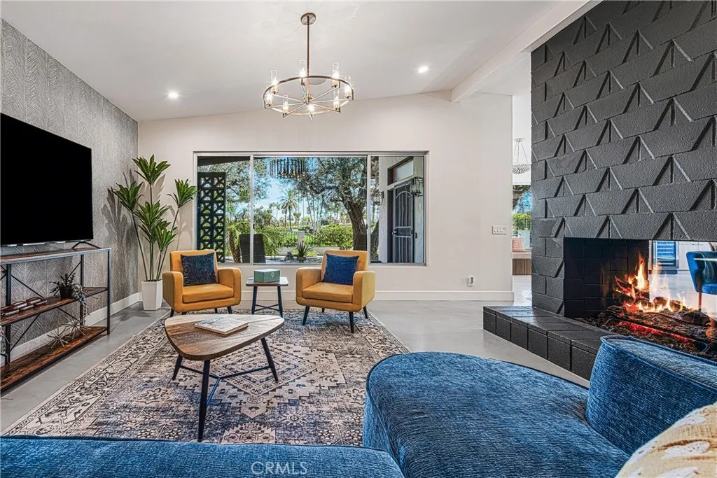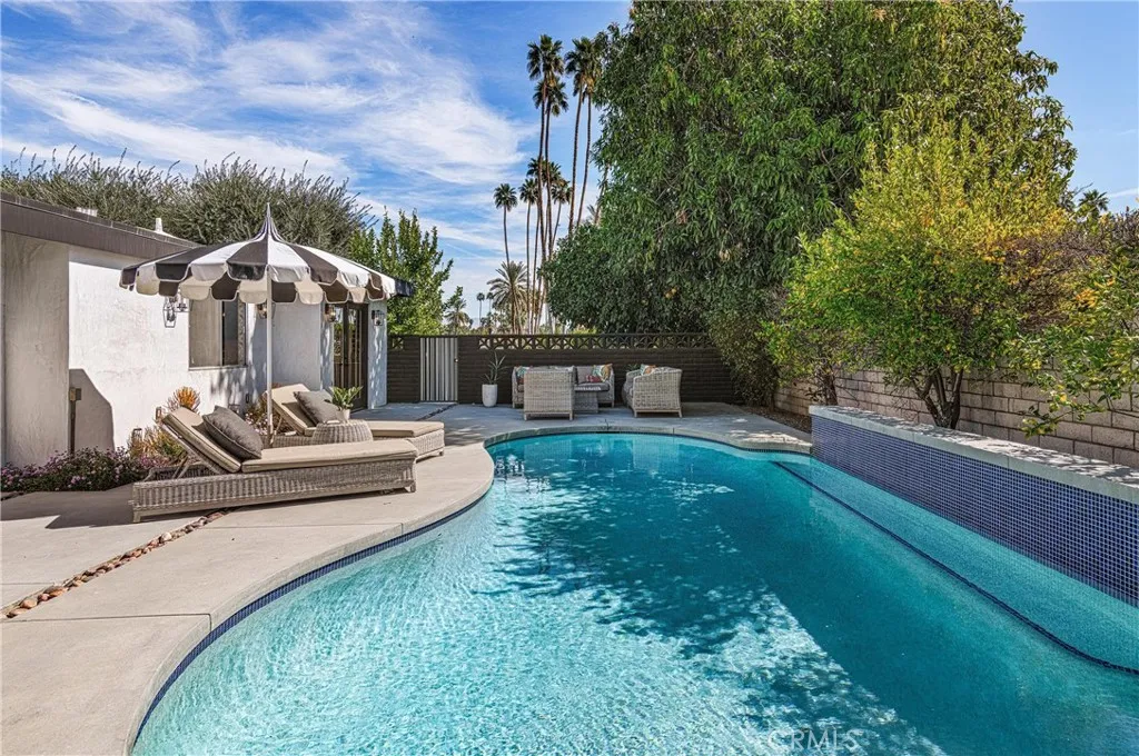Discover timeless mid-century modern charm at 5155 East Bobolink Lane, a single-level desert retreat positioned between the 6th and 7th fairways of the Legend Course at Tahquitz Creek Golf Club. Built in 1962 and thoughtfully updated, this 4-bedroom, 3-bath home offers approximately 2,425 square feet of light-filled living with vaulted ceilings, a dual-sided vintage block fireplace, and an open chefs kitchen anchored by an oversized island and buffet with beverage fridgeideal for entertaining. The primary suite enjoys privacy and serene fairway views, a walk-in closet, and a spa-like bath with separate tub and shower. Step outside to resort-style grounds on a generous 10,454 sq ft lot: saltwater pool and spa with waterfall, new pool decking, circular fire pit, outdoor kitchen, shower, and multiple patios framed by swaying palms and mountain panoramas. Recent improvements include a new roof, updated HVAC, smooth stucco, upgraded electrical and lighting, and epoxied concrete floors, providing modern comfort with classic architectural character. With no HOA or land lease and current eligibility for a short-term rental permit, the property suits full-time residents, seasonal escapees, or investors seeking turnkey desert lifestyle income. Two-car garage, covered parking and flexible workshop/golf-cart space complete the package. Experience effortless indoor-outdoor living, dramatic views, and rare golf-course frontageschedule a private showing today and make this Palm Springs classic your own. Located minutes from downtown Palm Springs' vibrant dining, shopping and cultural scen