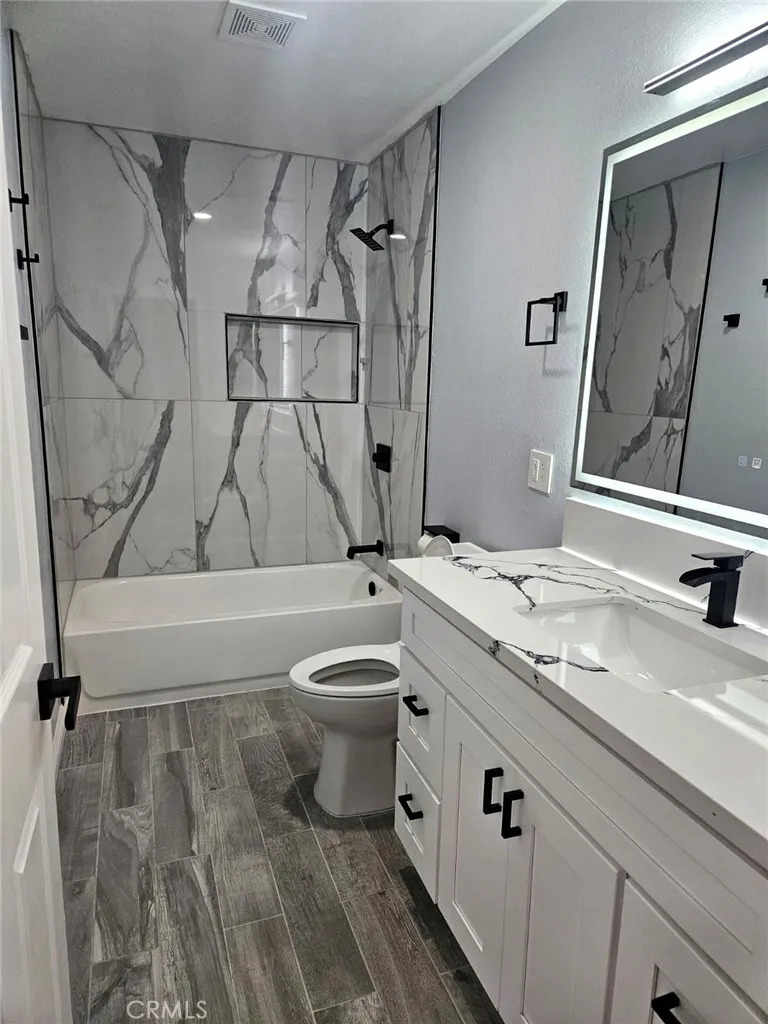Welcome to this thoughtfully remodeled 3-bedroom, 2-bath home offering modern design, clean lines, and comfortable living throughout. From the moment you step inside, youll appreciate the seamless luxury vinyl plank flooring that flows throughout the entire home, creating a warm and cohesive feel. Recessed lighting enhances the bright, open atmosphere, while updated finishes give the home a fresh, contemporary look. The stunning kitchen serves as the heart of the home, featuring elegant quartz countertops, brand-new stainless steel appliances including refrigerator, stove/range, and dishwasher, and sleek cabinetry that combines style and function. Whether preparing everyday meals or hosting guests, this space is designed to impress. The spacious primary suite offers a peaceful retreat complete with a walk-in closet and a beautifully updated private bathroom. Both bathrooms have been upgraded with quartz vanity countertops and modern LED mirror lighting, adding a sophisticated, spa-inspired touch. Step outside to a private backyard framed by a beautiful, classy wood fence that adds warmth, charm, and enhanced privacy. The outdoor space offers room to relax, entertain, or customize to your lifestyle. Every detail has been carefully selected to create a home that feels both stylish and comfortable. Completely move-in ready, this property offers the perfect blend of modern upgrades and everyday functionality. A true turnkey opportunity ready for its next owner to enjoy.